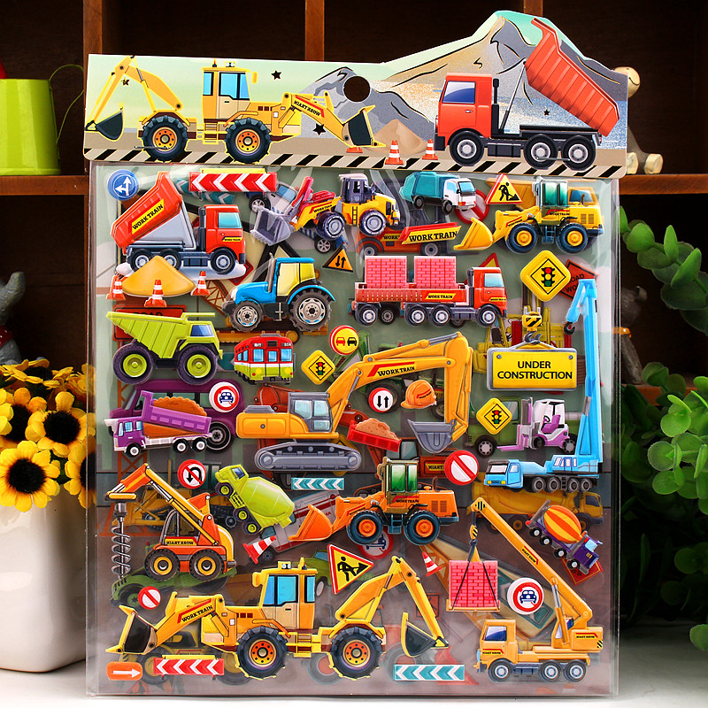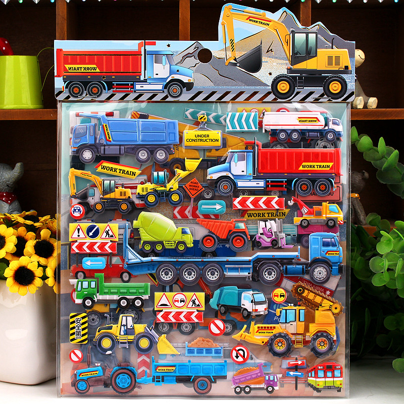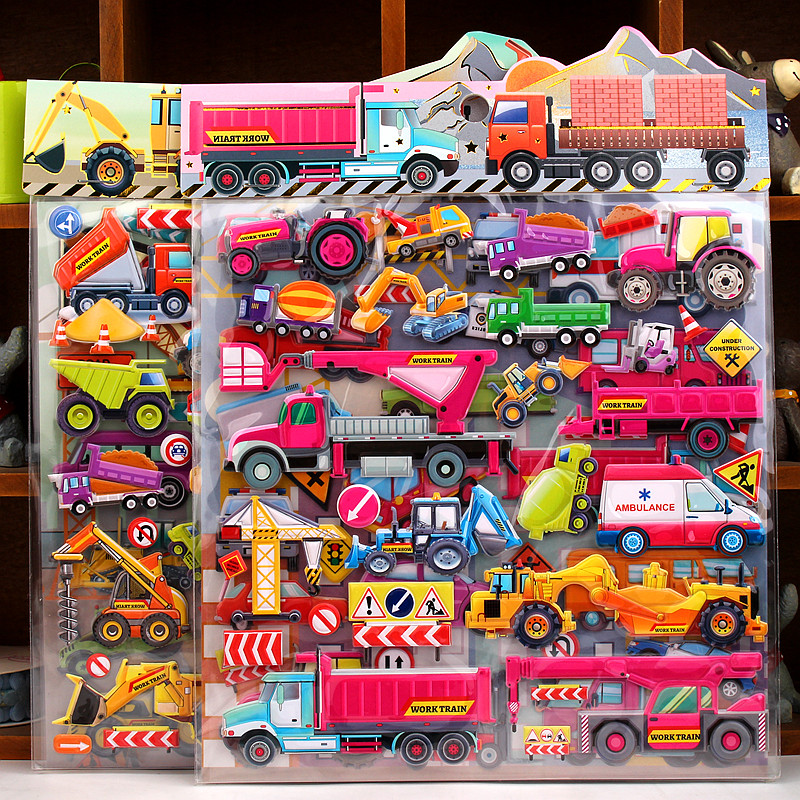 汽车工程车消防车挖土机儿童3d立体泡泡贴纸sticker男孩宝宝贴画