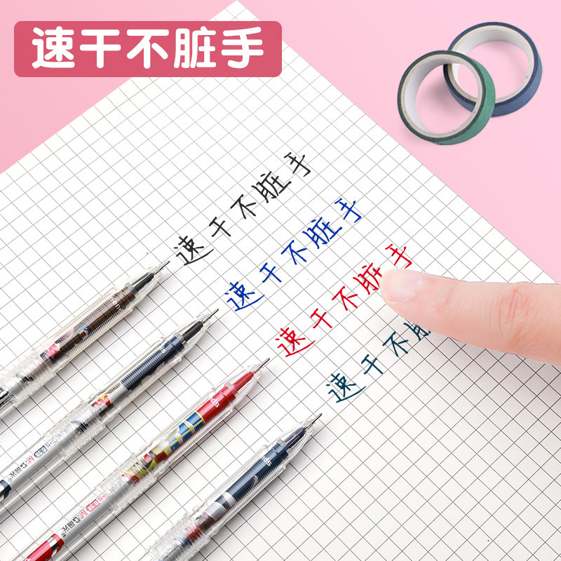 晨光按动中性笔黑色笔速干顺滑高颜值红蓝碳素笔考试办公用签字笔