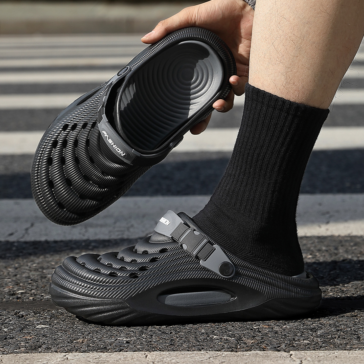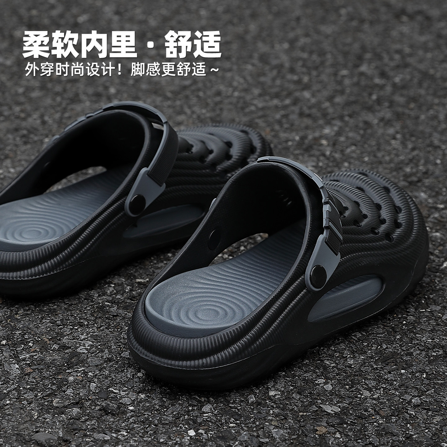 踩屎感洞洞鞋男款夏季2026新款防滑防臭厚底户外耐磨拖鞋男士外穿