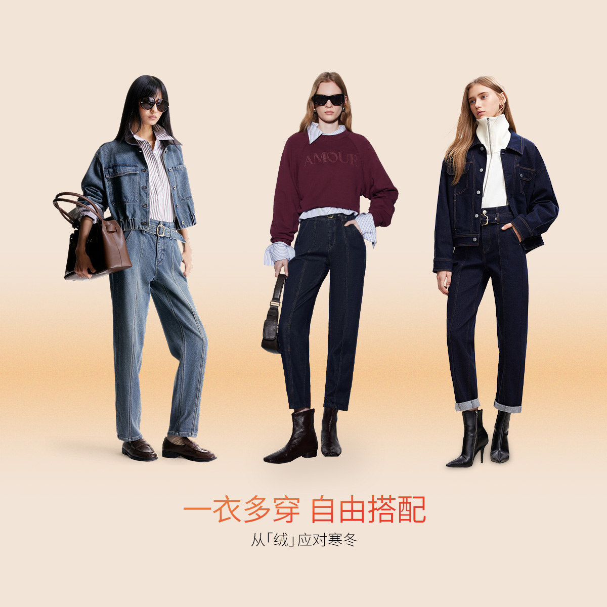 森柔|森马牛仔裤女冬季加绒保暖宽松喇叭裤弹力长裤2025新款港风