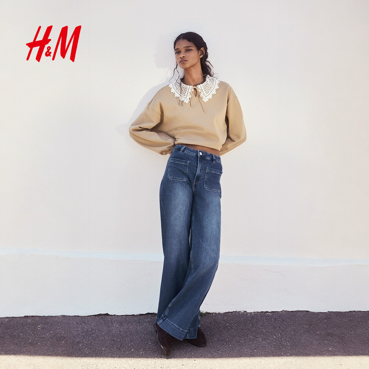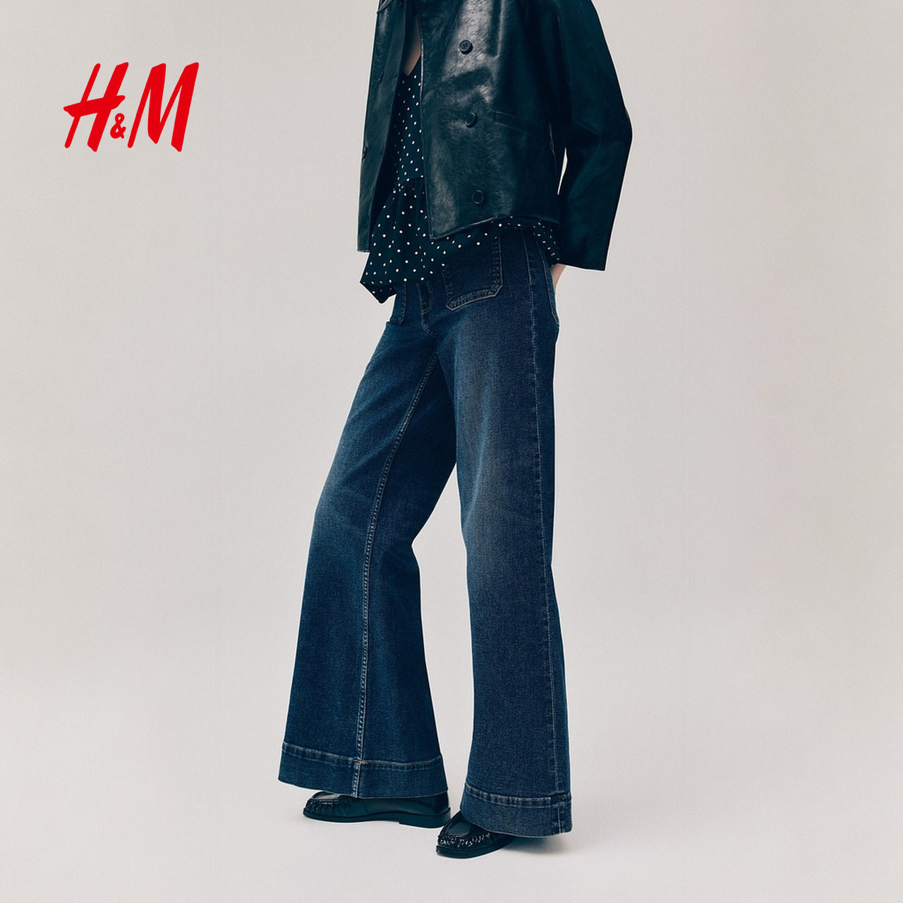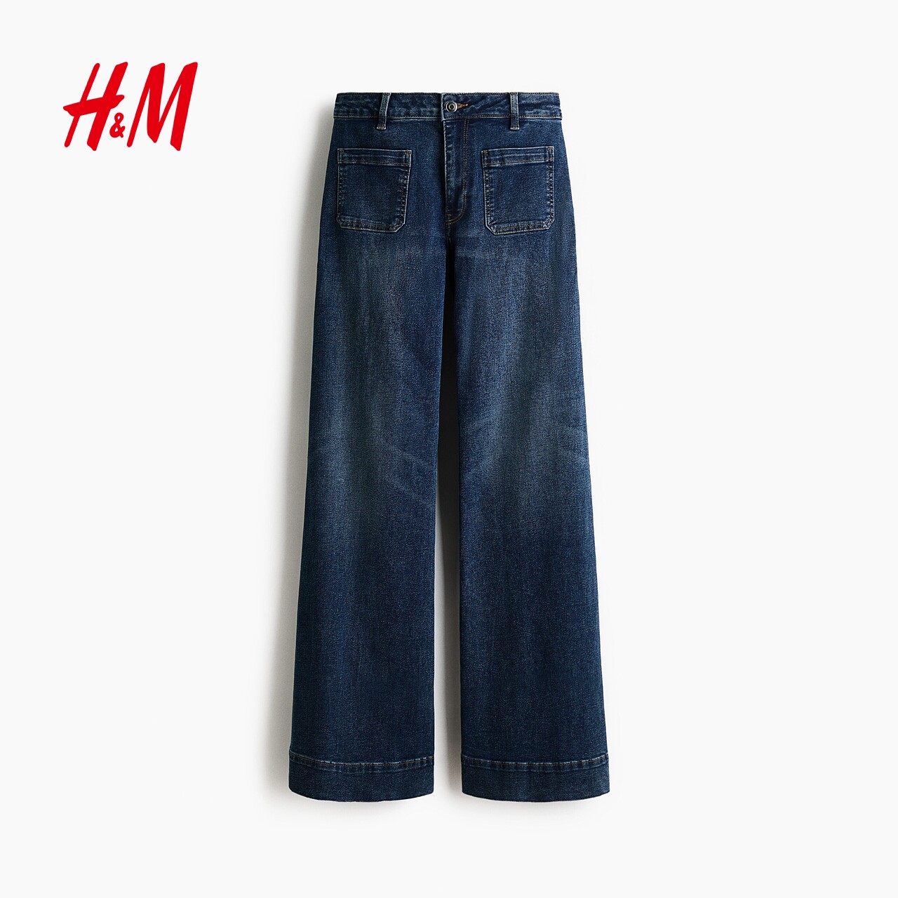HM女装牛仔裤2026春季新款高腰阔腿通勤丹宁老钱风牛仔裤1308115