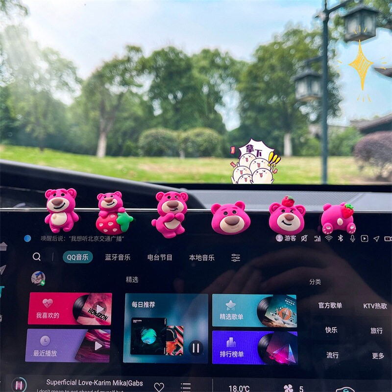 草莓熊汽车内饰品摆件2025新款中控台显示屏贴片配件车载装饰用品