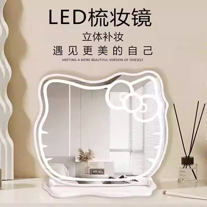 镜子kitty化妆镜led带灯台式桌面智能充电卧室梳妆镜凯蒂猫网红镜