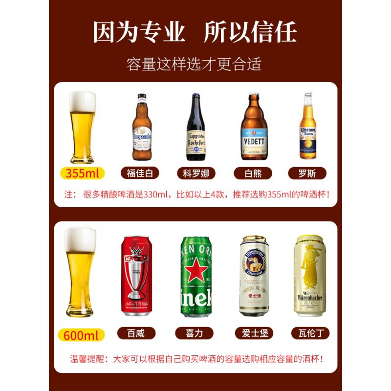 【6只装】啤酒杯大容量家用网红精酿专用扎啤杯品脱杯加厚玻璃