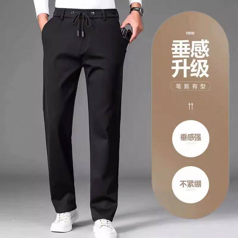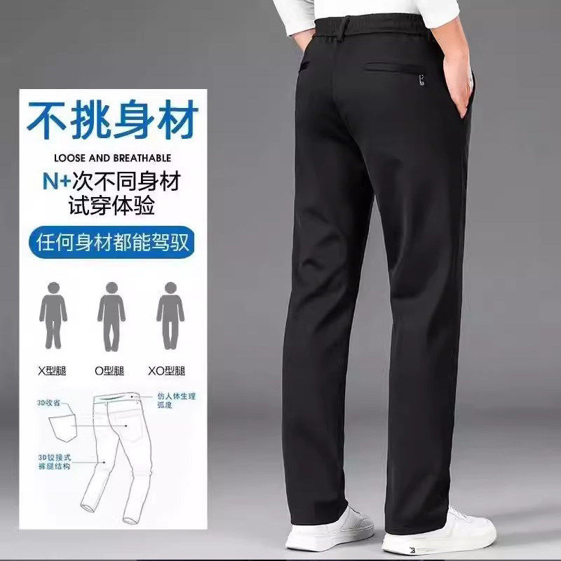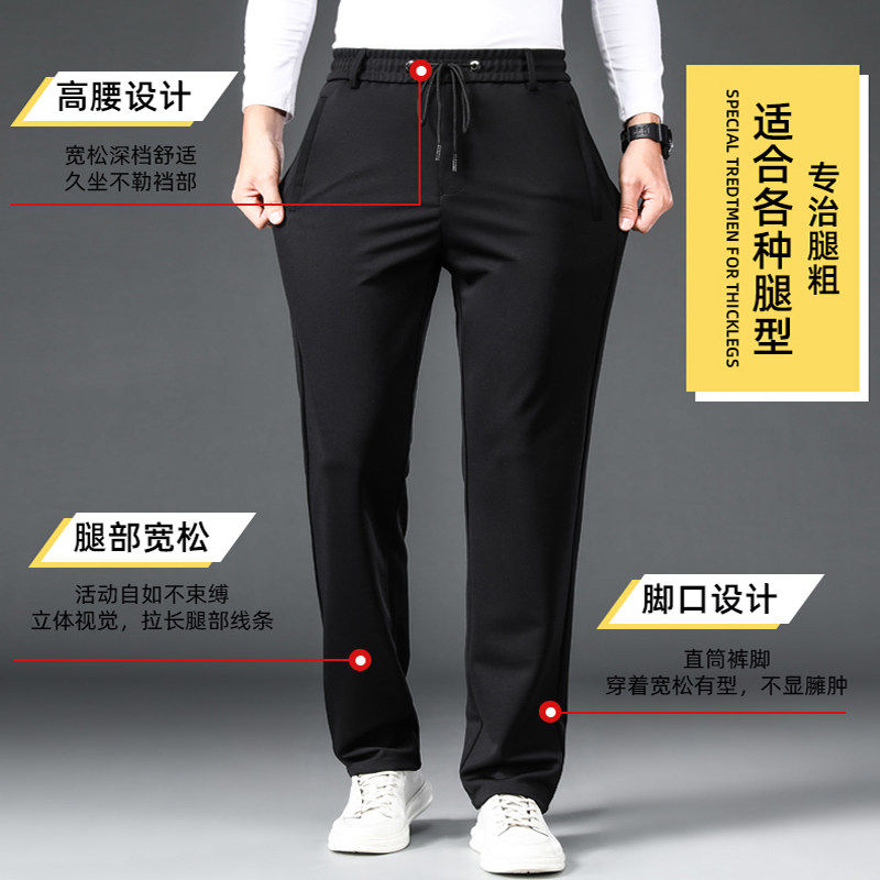 裤子男春秋季男士休闲裤薄款运动裤中年长裤爸爸直筒男裤黑色冰丝