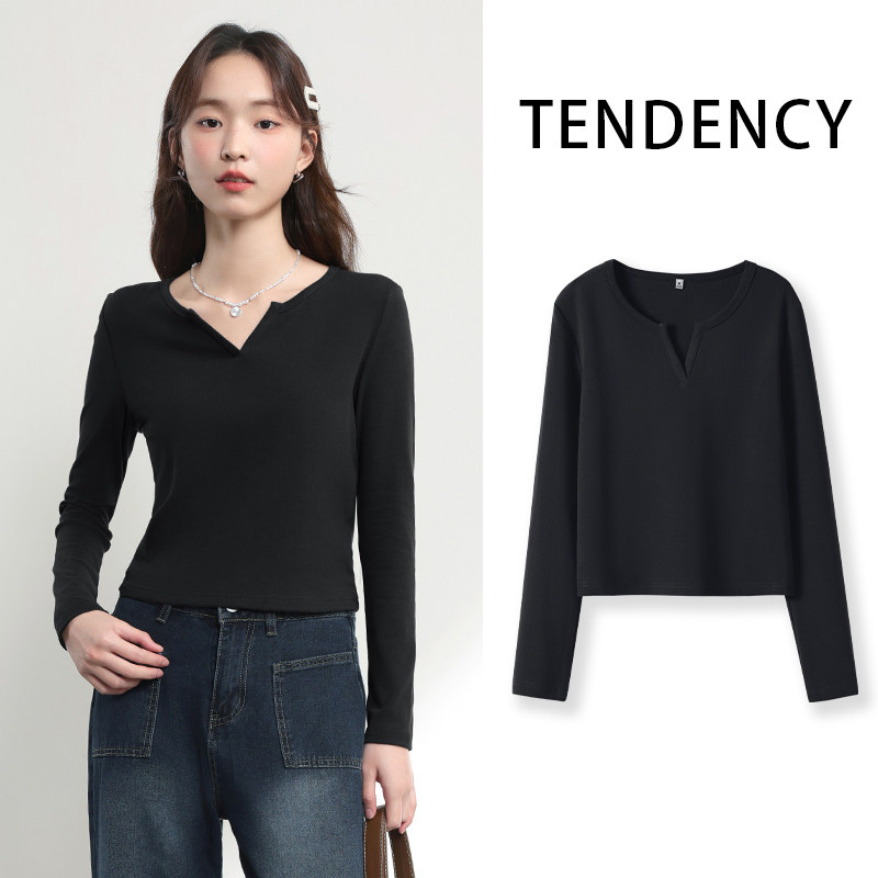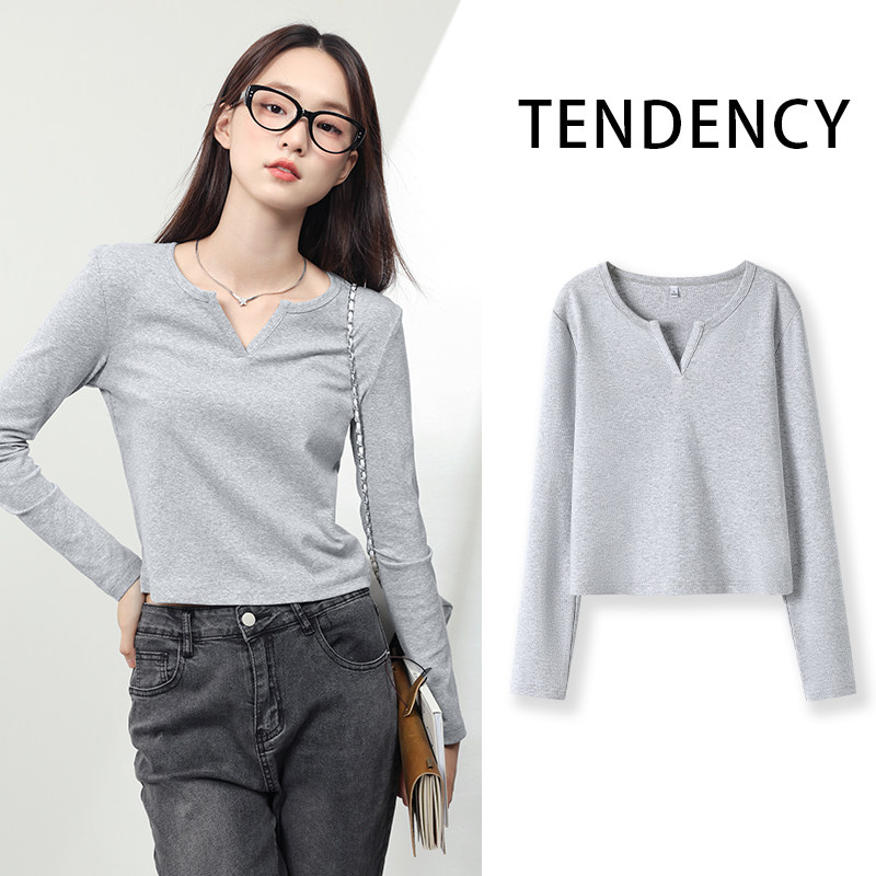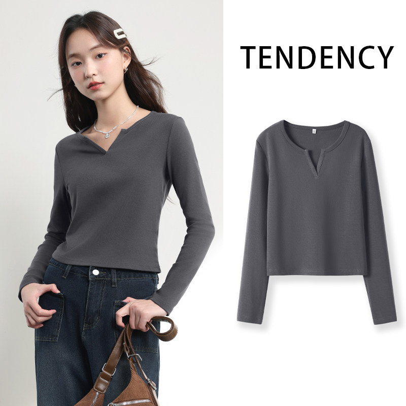 V领紧身长袖t恤 修身显瘦 时尚百搭