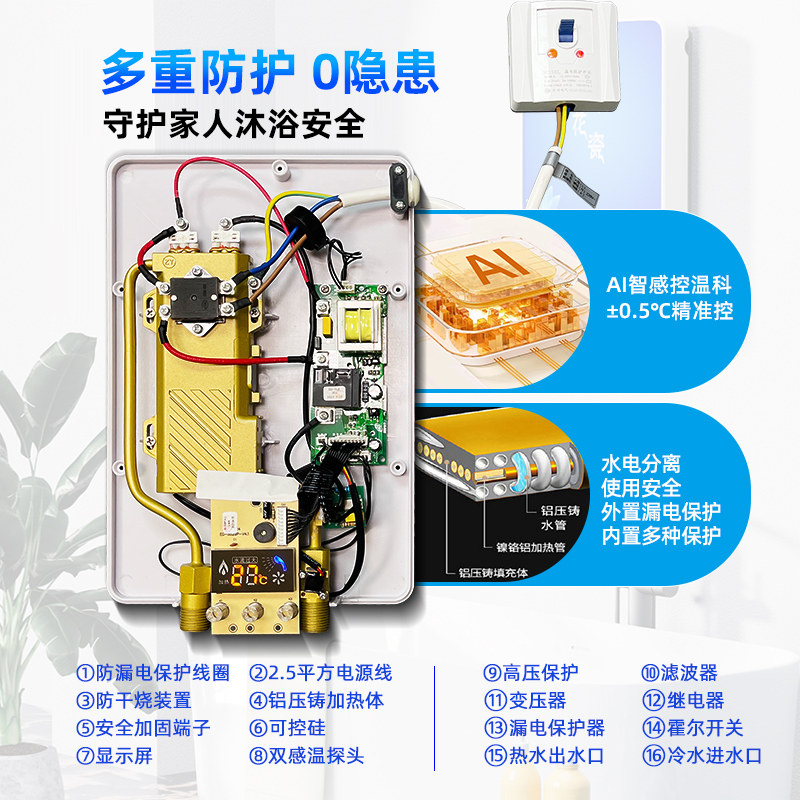 小艾即热式电热水器速热家用淋浴恒温变频卫生间快速小型洗澡神器