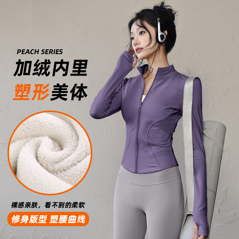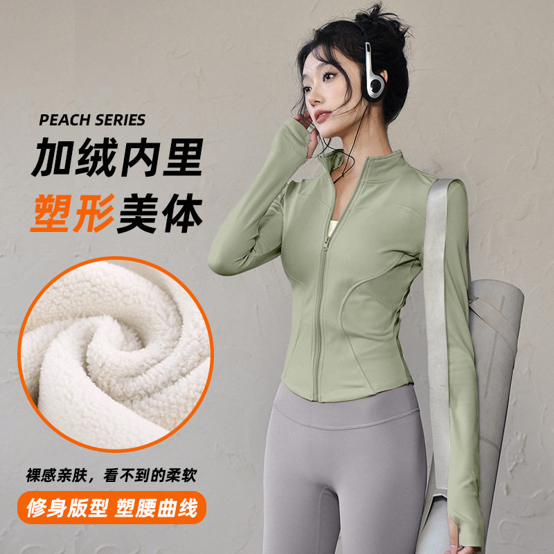 瑜伽服女秋冬加绒显瘦运动上衣跑步健身外套速干紧身长袖骑行户外