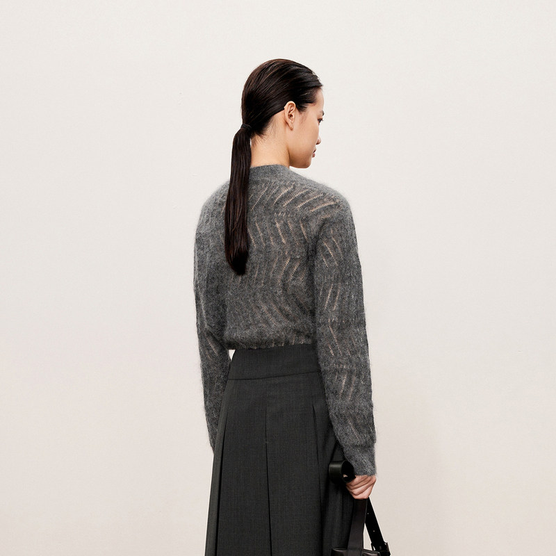 鄂尓半高2025秋冬新款安迪绒毛衣半高领套头衫洋气百搭款