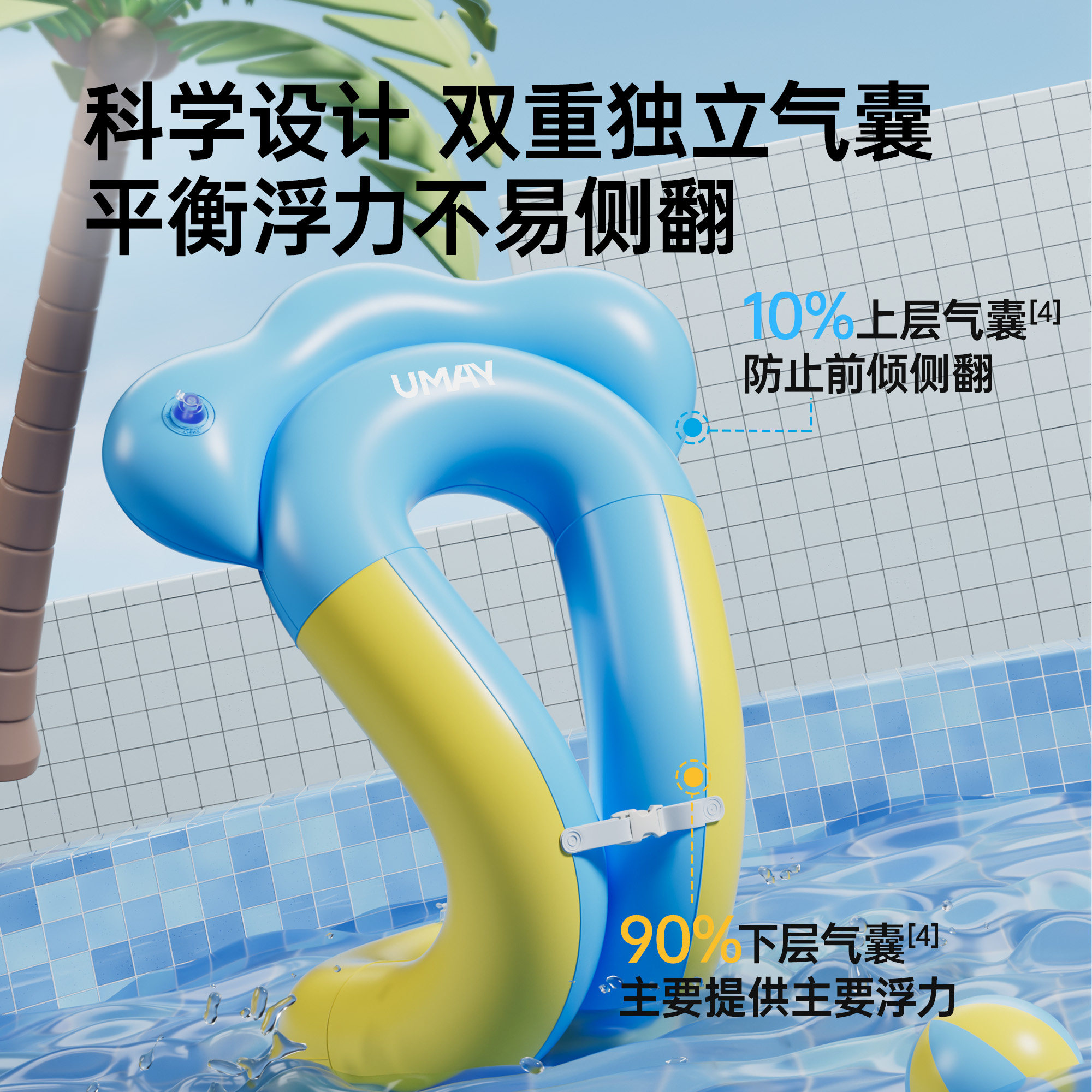 佑美游泳圈儿童游泳圈3岁以上防侧翻手臂圈男童女童专用腋下圈