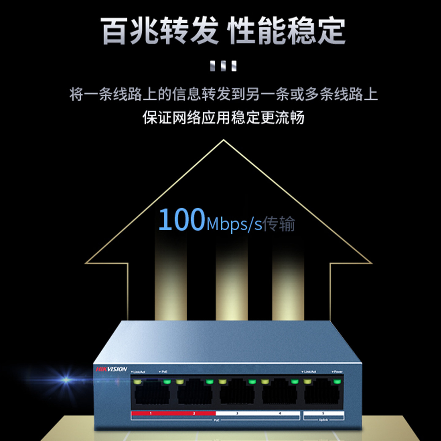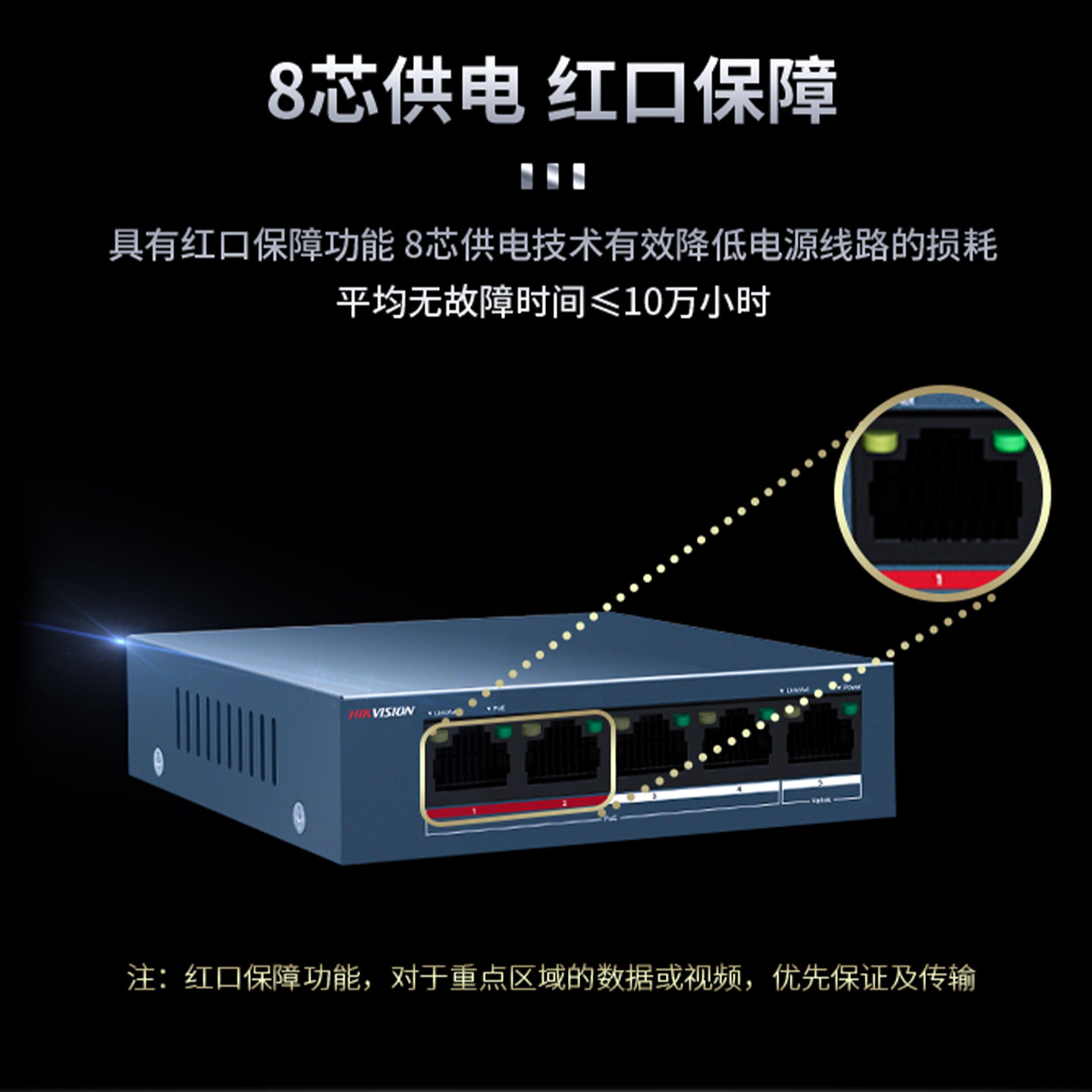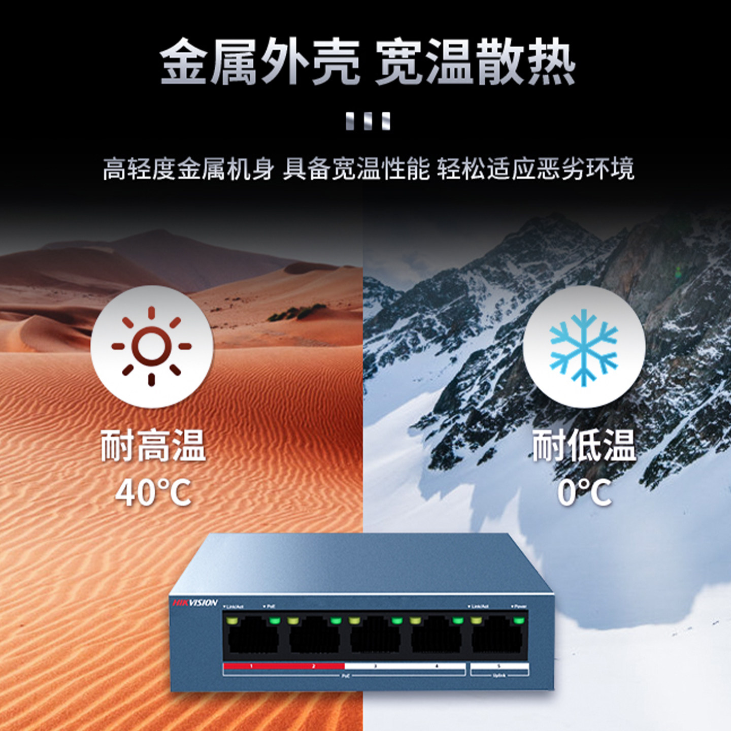 海康威视网络交换机18口5口POE铁壳百兆国标监控专用网线供电转换分线器路由网络以太网分流器DS-3E0105P-E/M