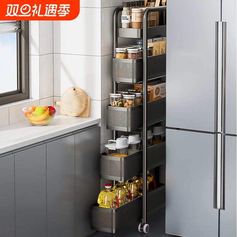 夹缝置物架厨房门后冰箱侧面极窄缝抽拉篮缝隙收纳柜卫生间小推车
