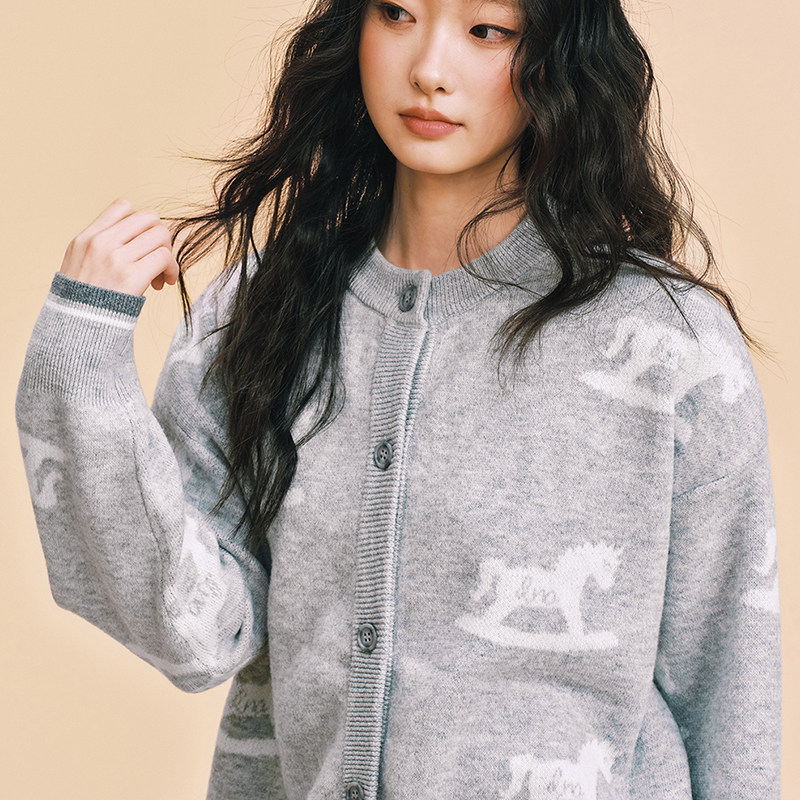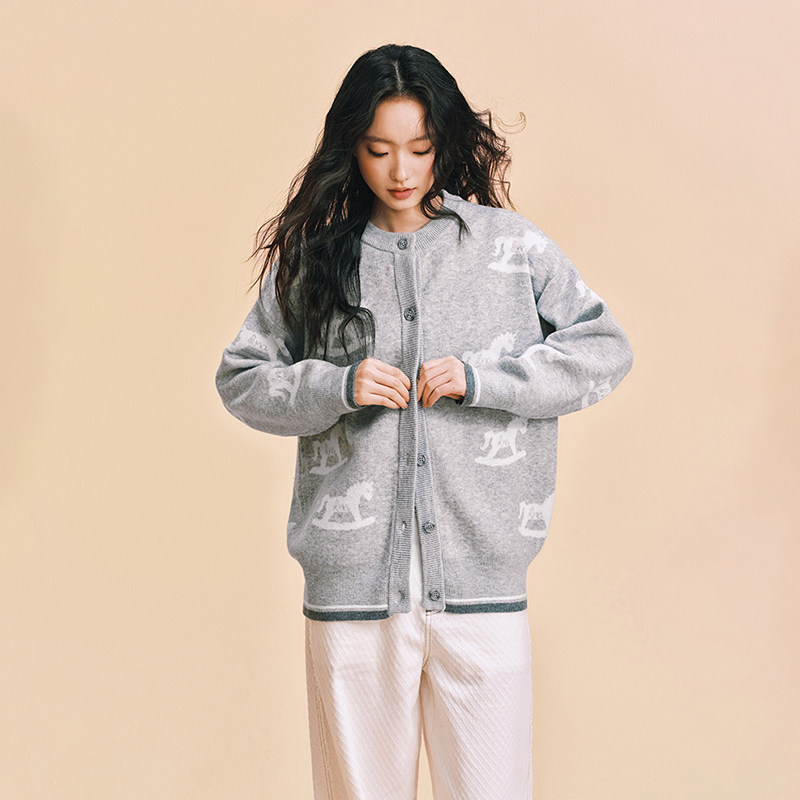 【DNA官方】满印提花木马针织衫开衫设计感宽松上衣休闲百搭毛衣