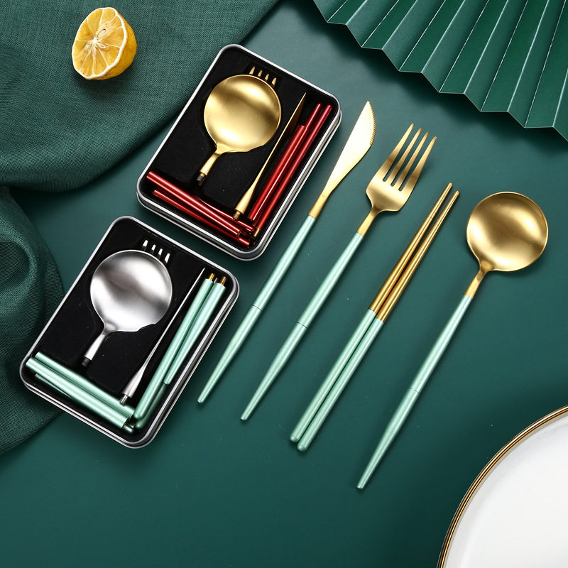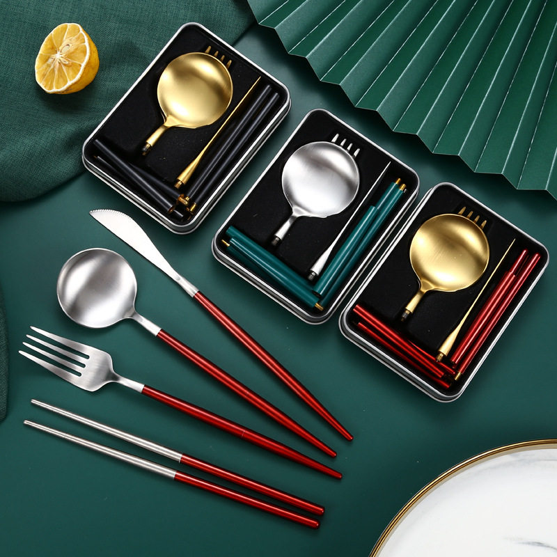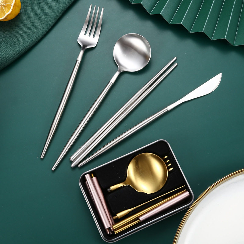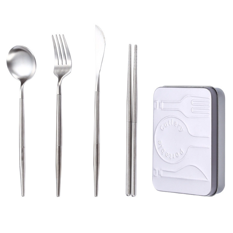 跨境304不锈钢便携餐具套装折叠筷子勺子一套户外旅行刀叉勺套装