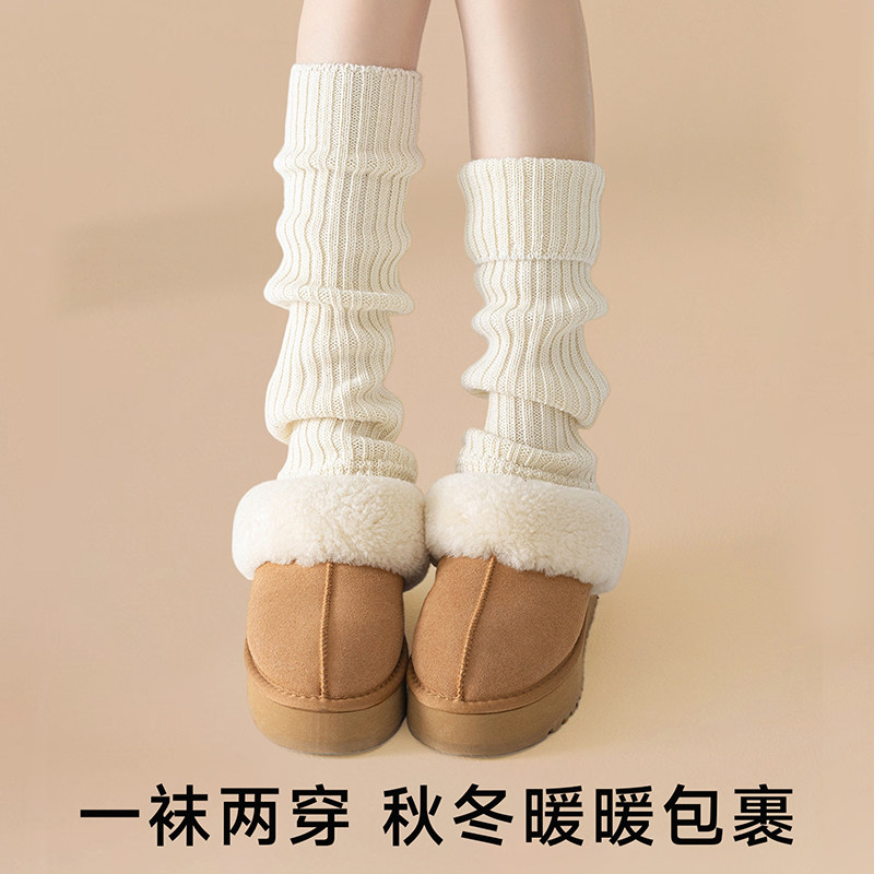 100%纯羊毛袜套堆堆袜女白色秋冬腿套配打底裤显瘦配雪地靴袜子