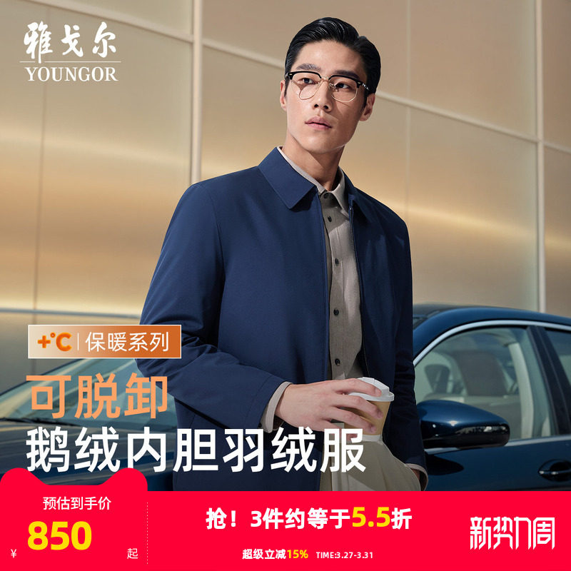【商务鹅绒】雅戈尔男士羽绒服秋冬新款白鹅绒行政保暖内胆夹克