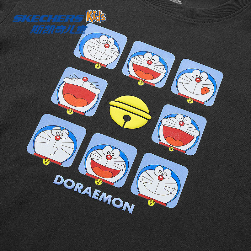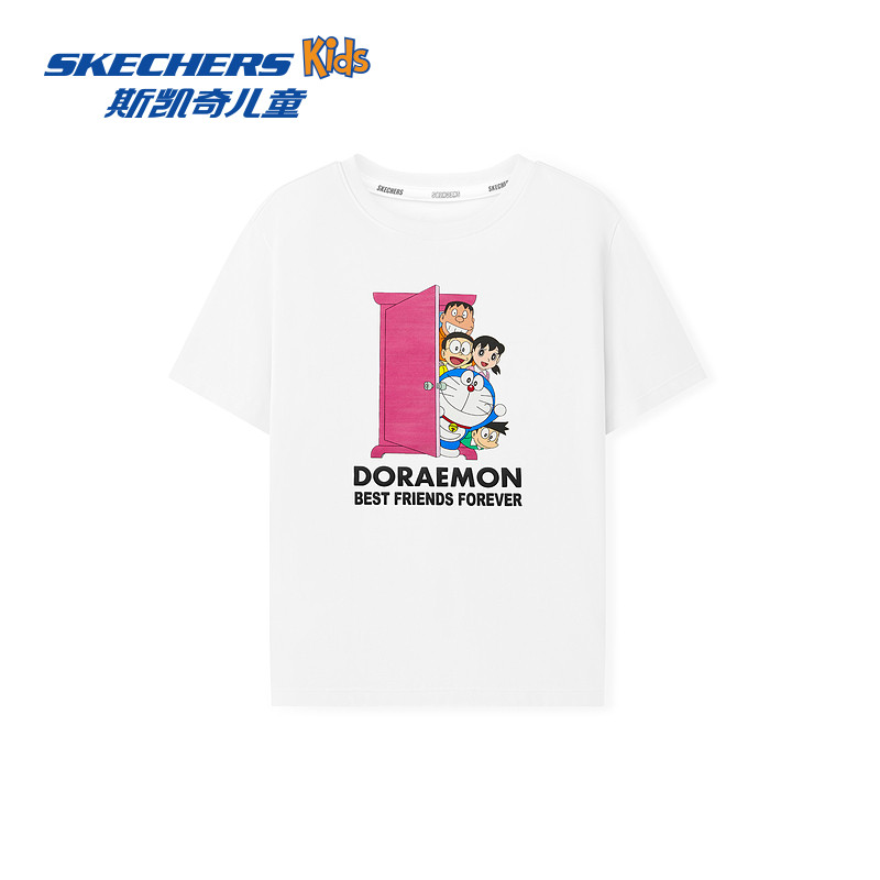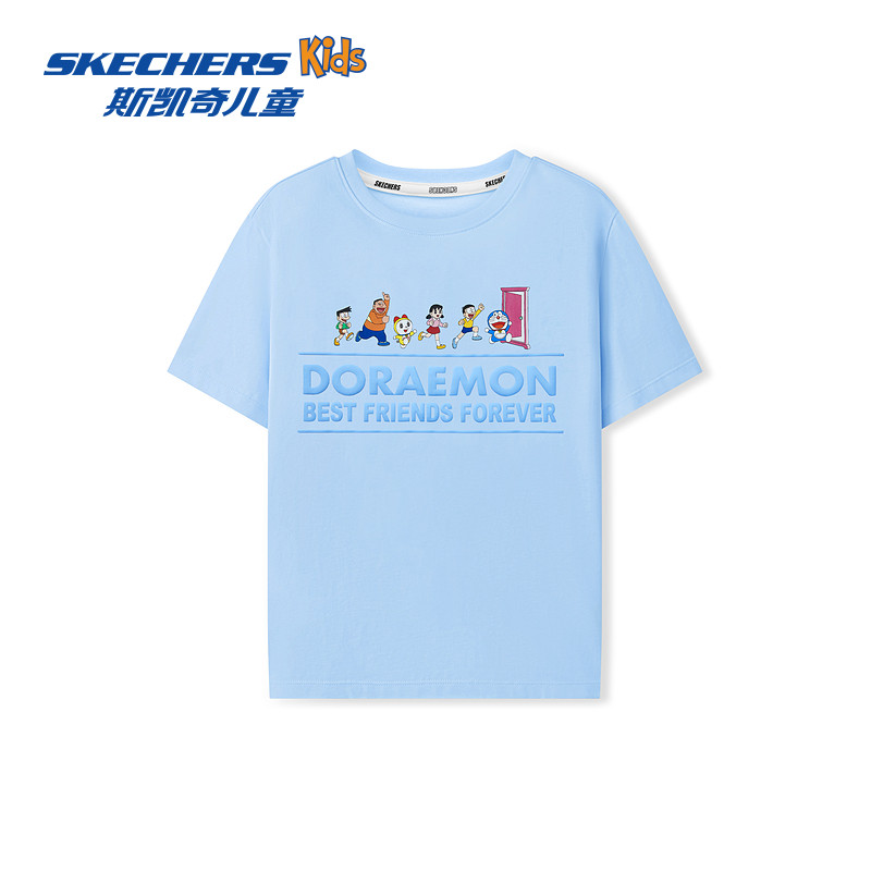 【哆啦A梦】Skechers斯凯奇儿童夏季款卡通印花萌趣针织短袖T恤衫