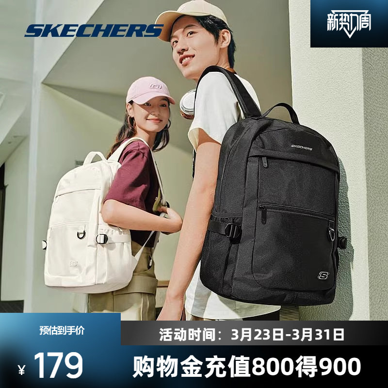 斯凯奇双肩包大容量简约旅行背包开学季百搭大学生运动休闲书包