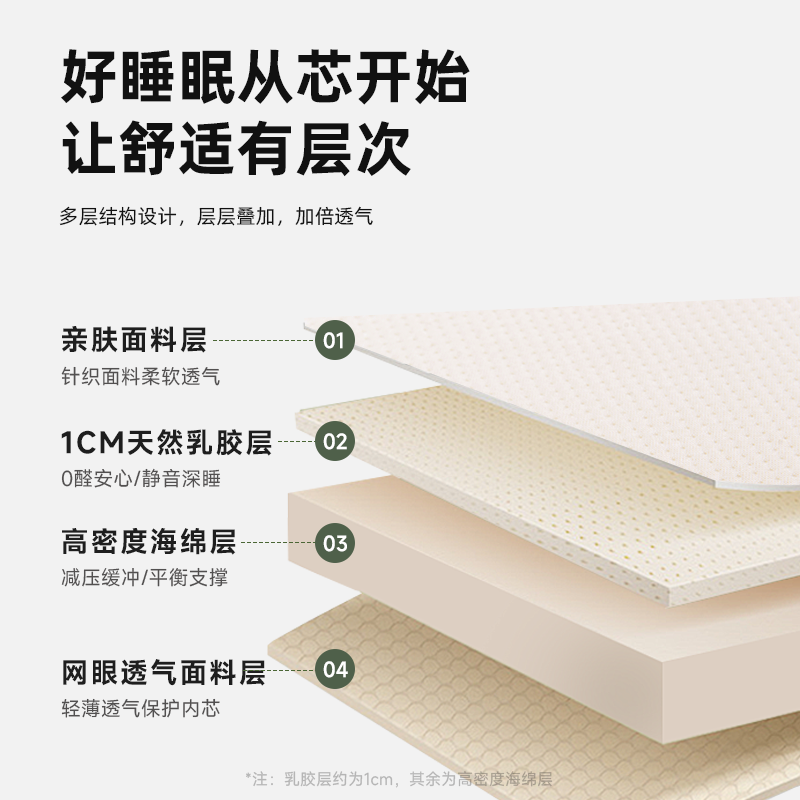 金橡树乳胶床垫5cm7.5cm泰国进口天然乳胶橡胶双人1.5/1.8米 悦享