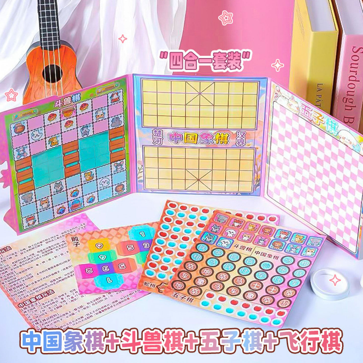 儿童益智游戏折叠小本子象棋斗兽棋五子棋飞行棋小学生专用四合一