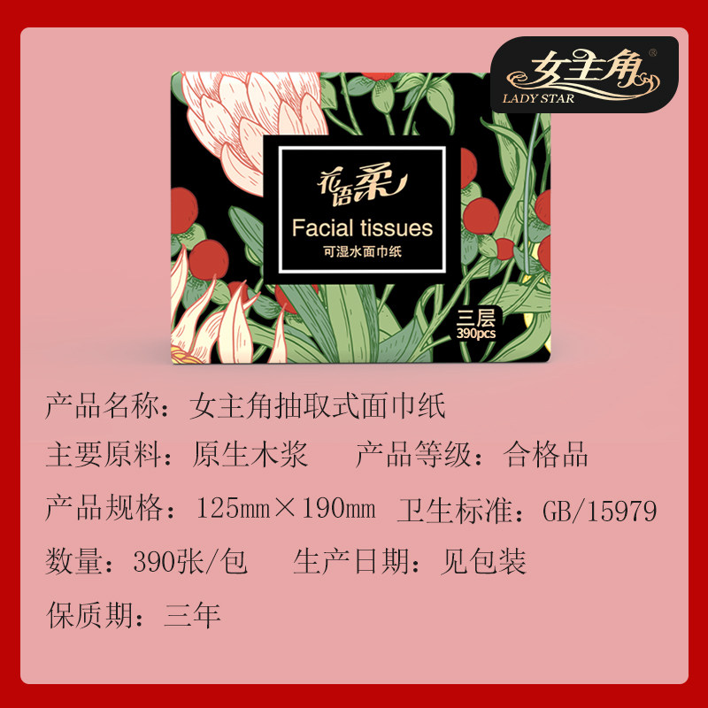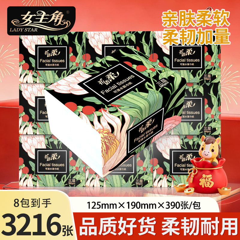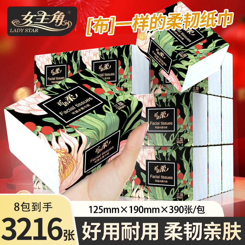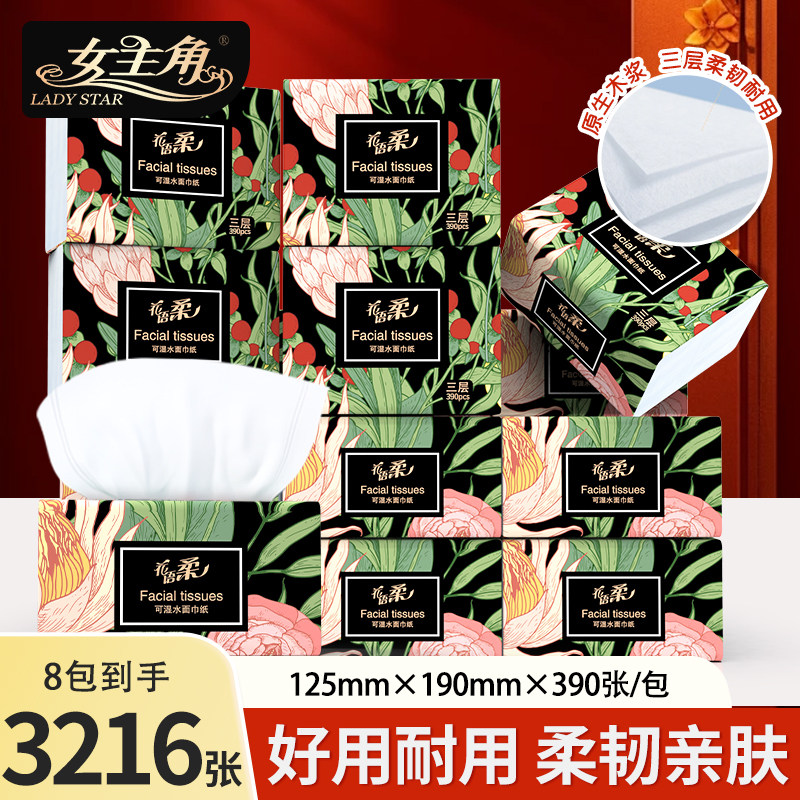 女主角水墨面巾纸8包抽纸婴儿纸巾餐巾纸家用实惠纸巾花语柔纸抽