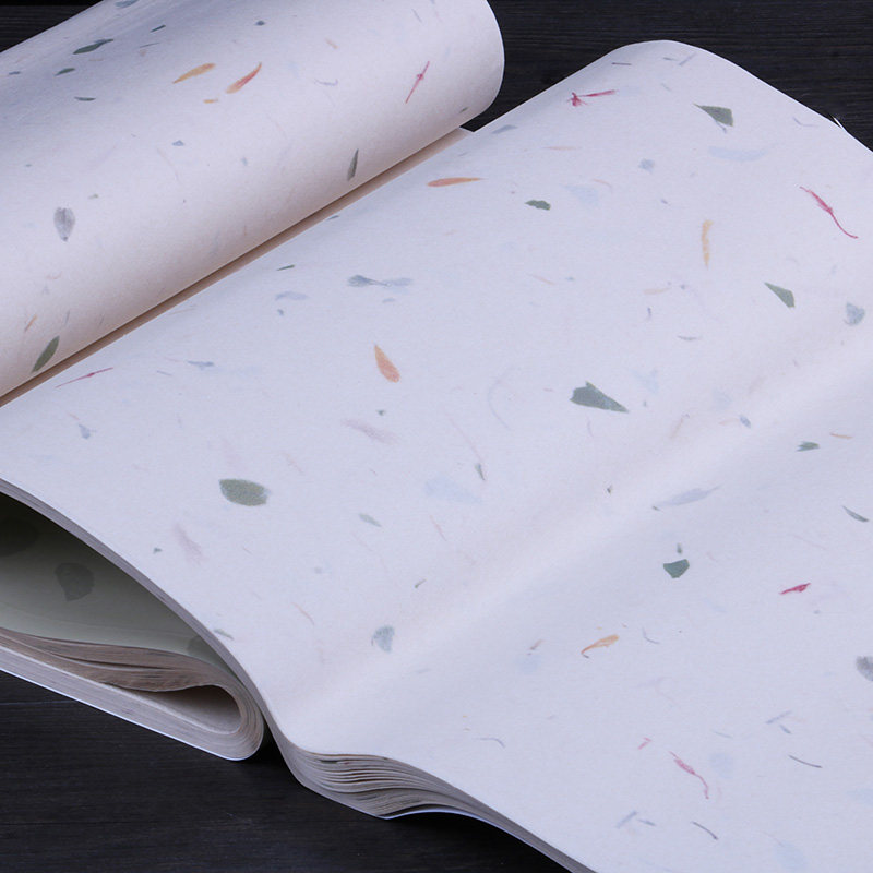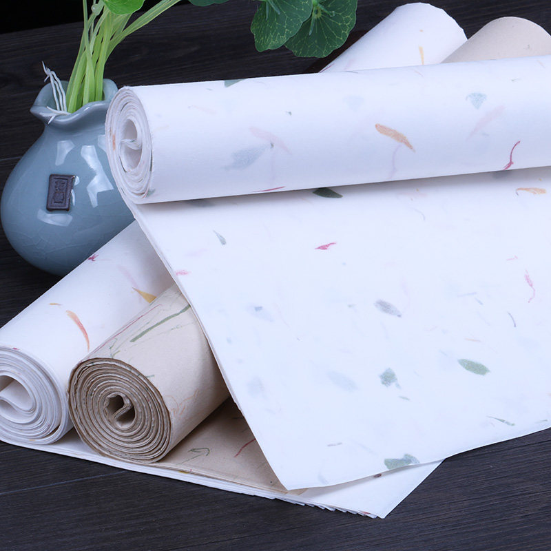 本悦古风花草宣纸四尺六尺对开整张半生半熟植物印花茶叶黄花红花包装宣纸毛笔书法创作专用纸小楷书法作品纸