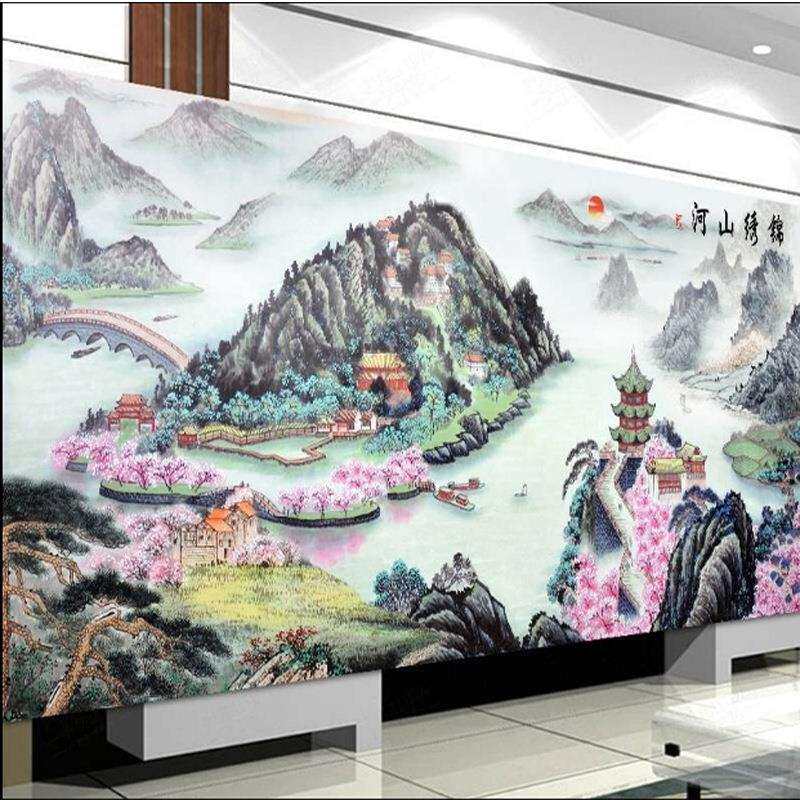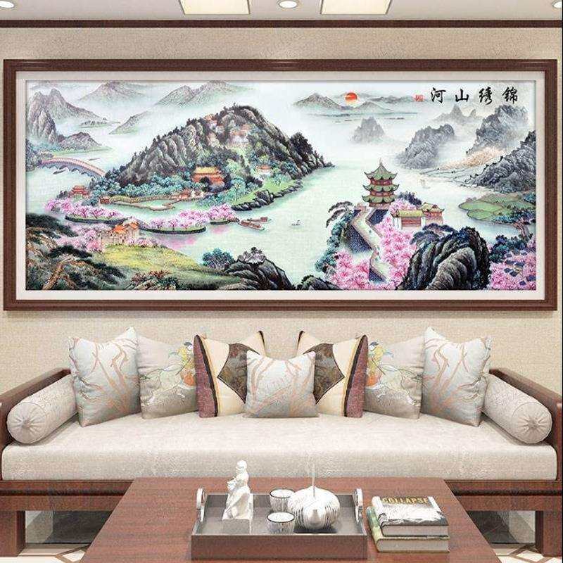 厂家直销锦绣山河壮丽版十字绣新款客厅满绣印花版线绣山水画风景