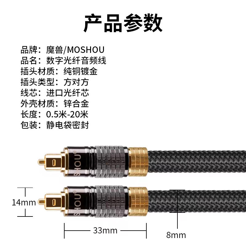 魔兽发烧级数字光纤音频线音响功放5.1方对方头1米7米8米15米20米