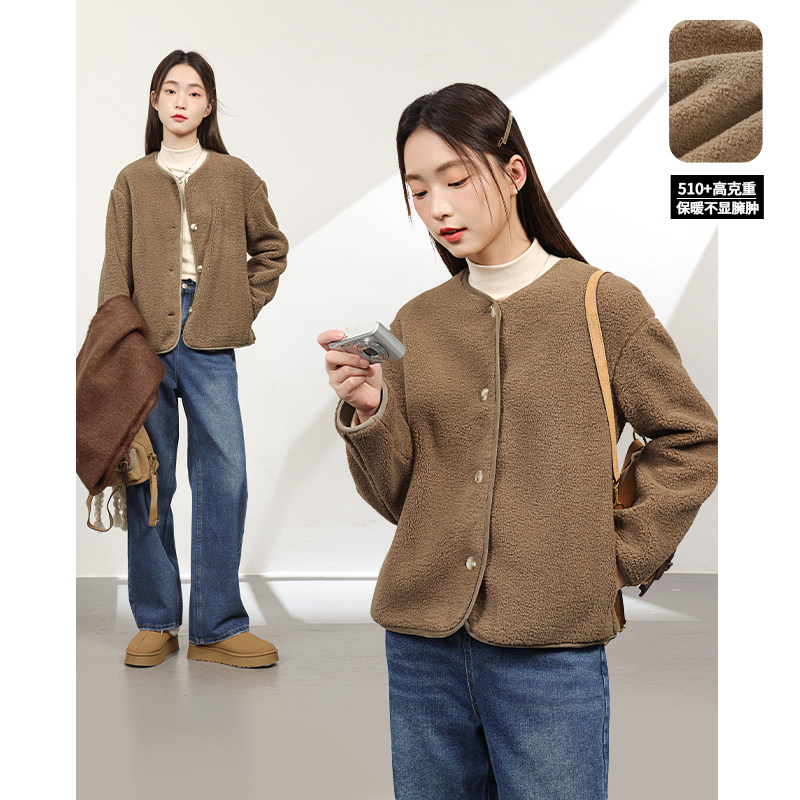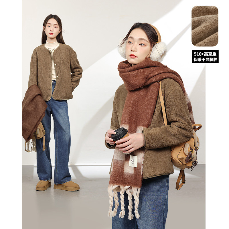 KWV真维斯摇粒绒外套女秋冬季2026新款爆款小香风保暖上衣小个子