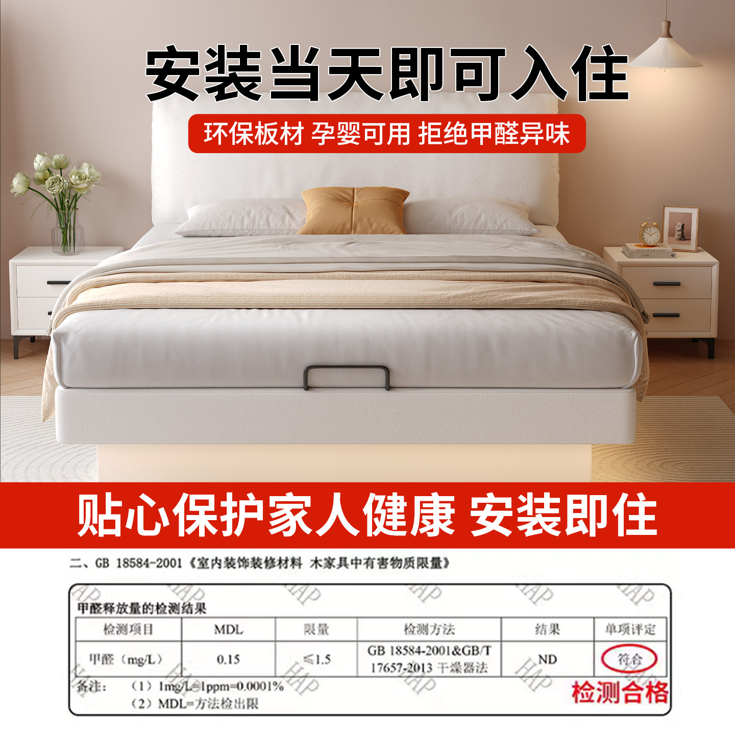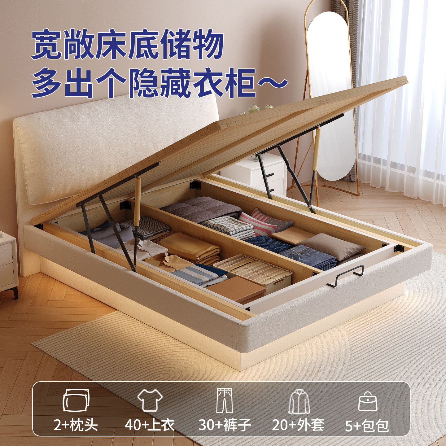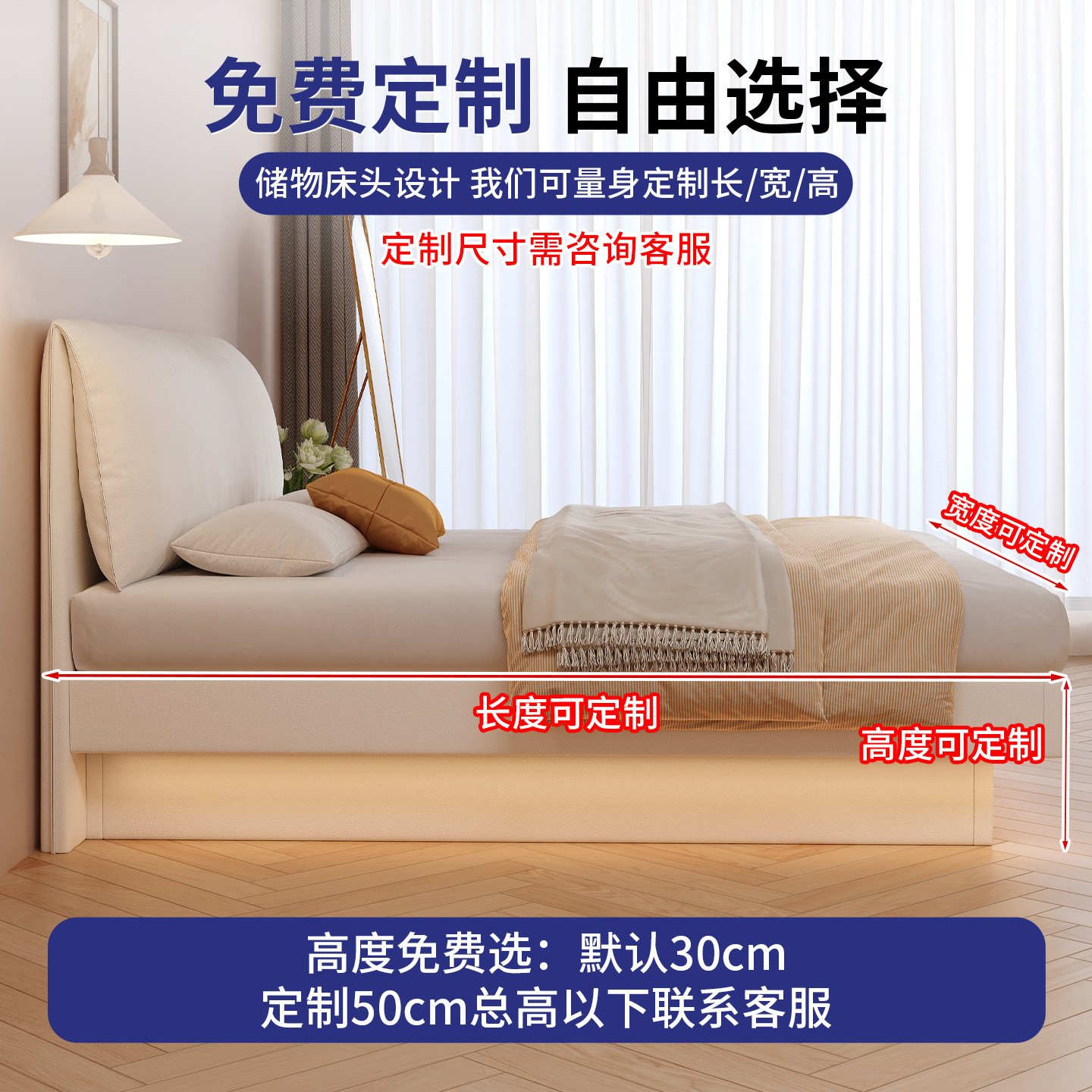 奶油风悬浮全实木小户型薄床头静音储物床主卧双人床可定制尺寸