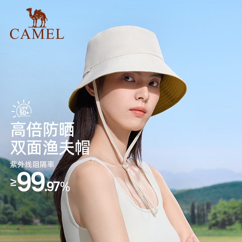 骆驼2025春夏新款渔夫帽男大帽檐轻薄遮阳盆帽女户外登山防晒帽子