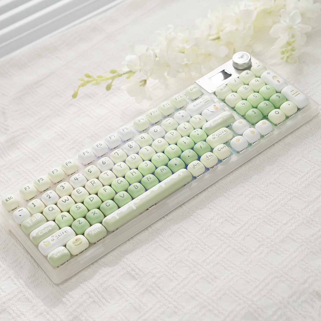 狼蛛F98pro透明客制化机械键盘三模无线蓝牙带屏幕旋钮麻将音静音