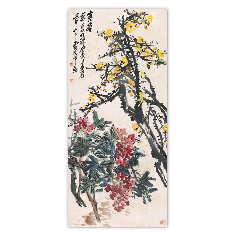 【质享家】家纺家饰-新中式_国画客厅玄关挂画竖款花鸟装饰画芯