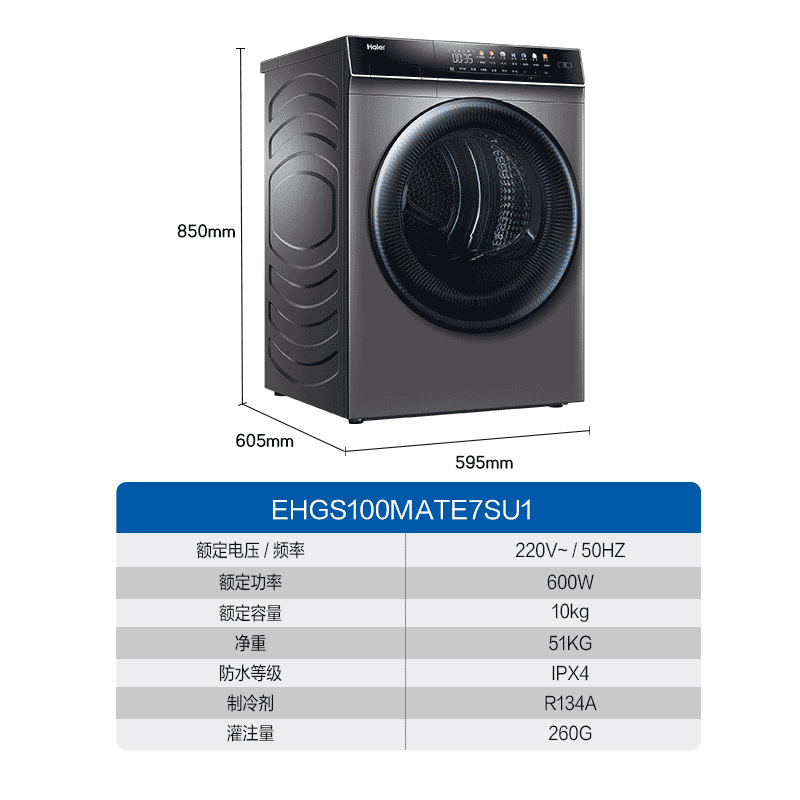 【海尔双擎】热泵烘干机10kg全自动家用滚筒干衣机防缠绕MATE7S