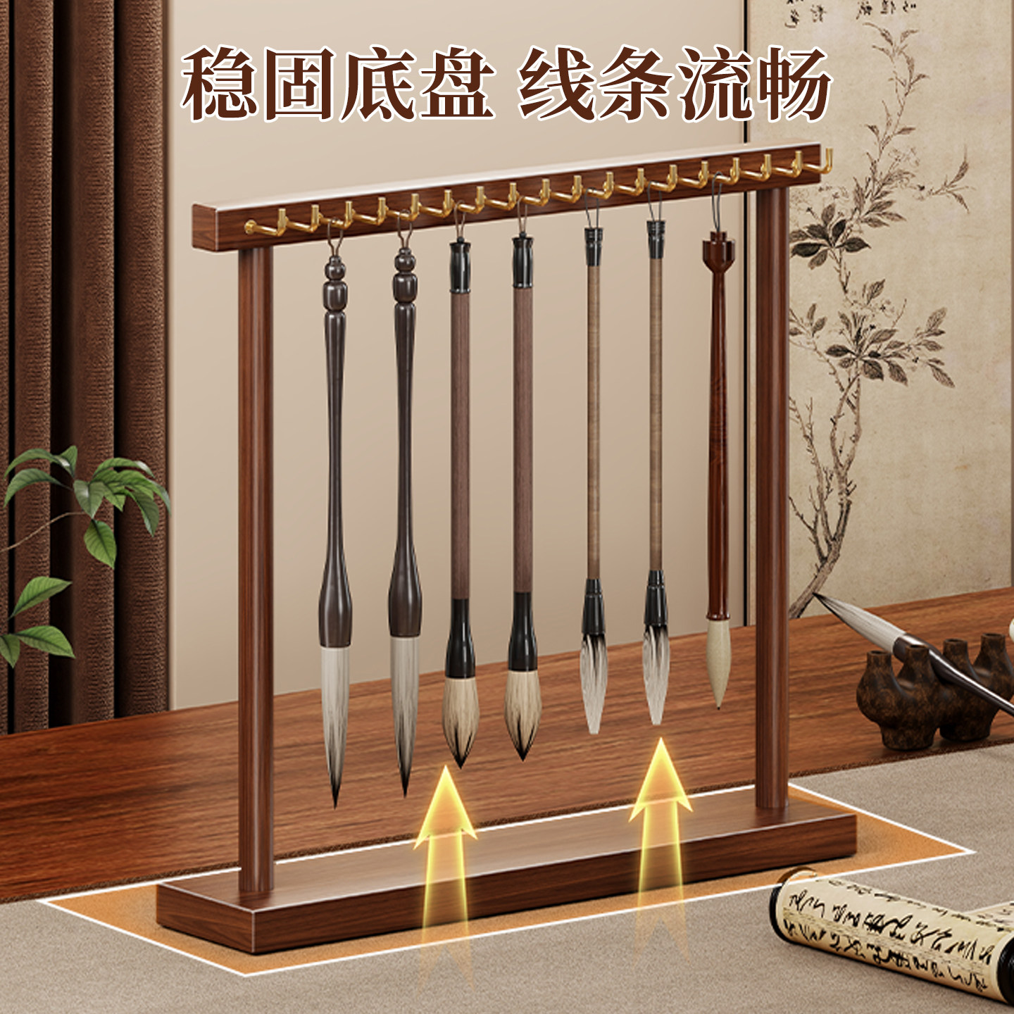 多功能毛笔挂架置物架实木陈列架子桌面展示架书法专用文具收纳架复古笔搁笔架放笔神器书法文房四宝摆件挂件
