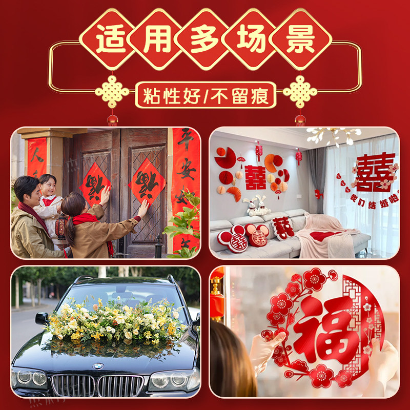 杰利贴对联双面胶强力无痕高粘度纳米胶春联专用透明胶贴多功能家用婚庆贴墙固定户外防水易撕不留痕财神贴