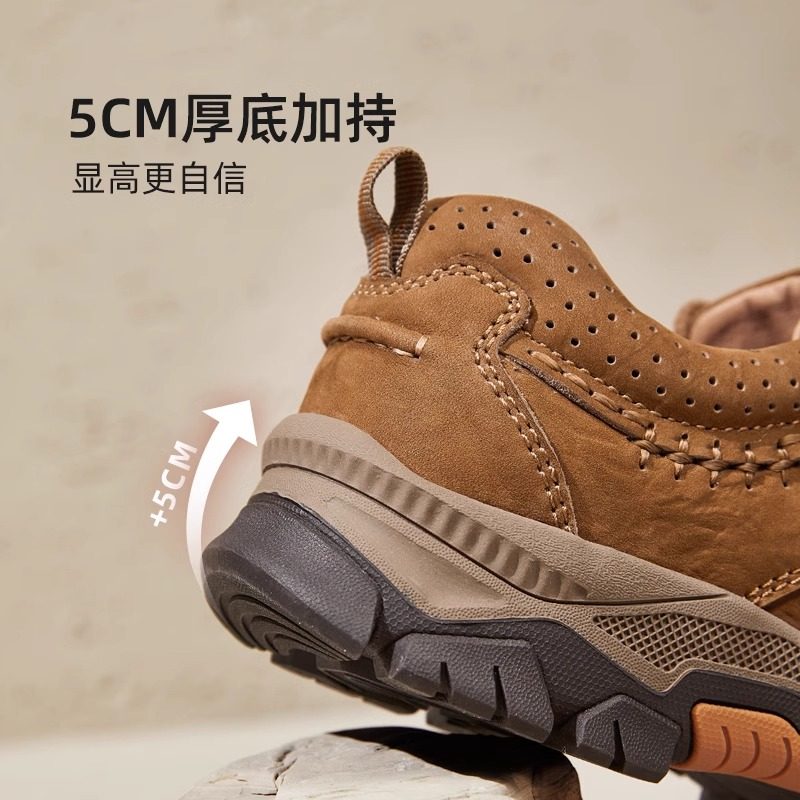 男士休闲皮鞋男真皮板鞋隐形内增高男鞋6cm英伦百搭8cm潮加绒保暖
