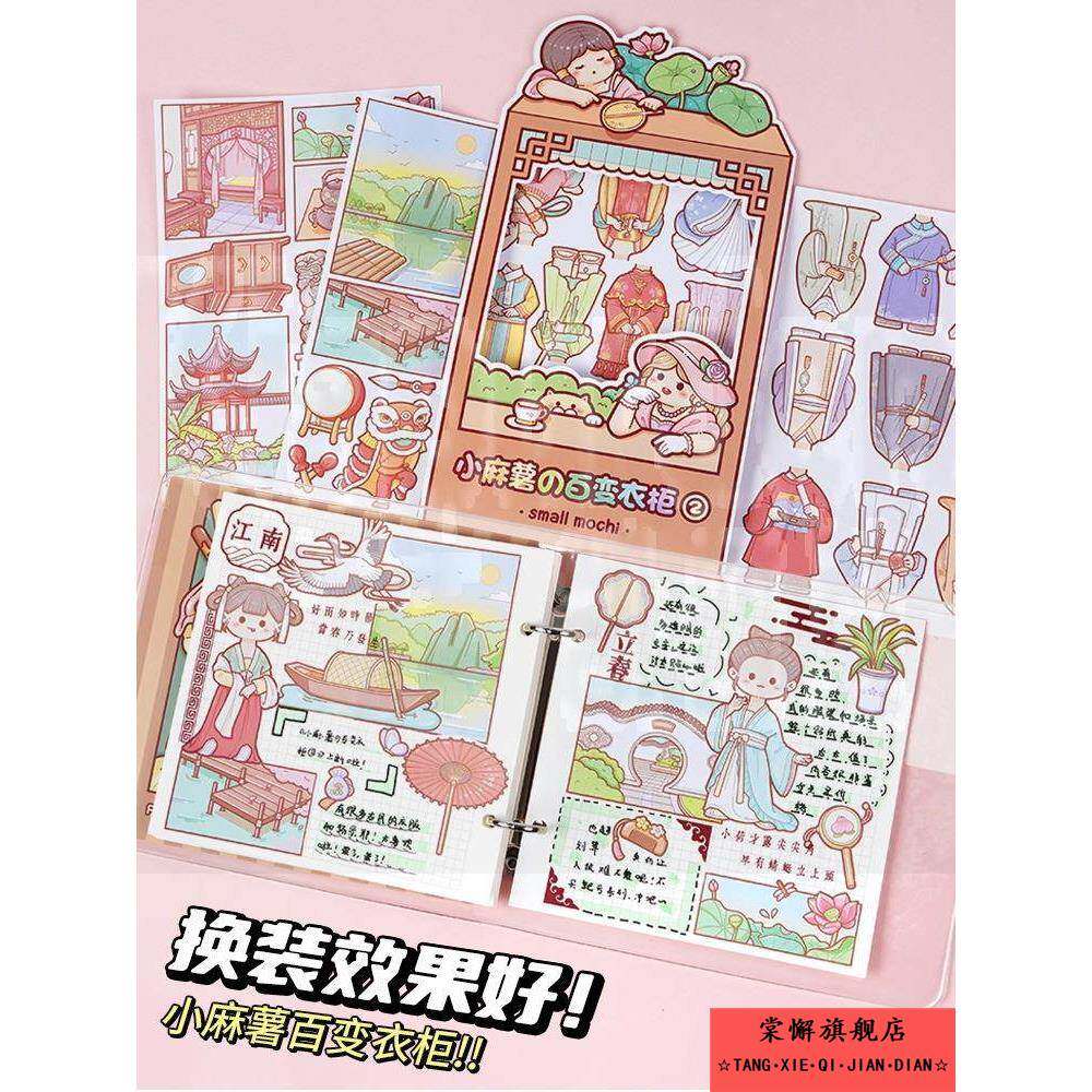 小麻薯百变衣柜换装贴纸网红百变衣橱2套装全套卡通可爱女孩儿童手帐贴纸贴画手账素材人物粘贴DIY手杖贴贴纸