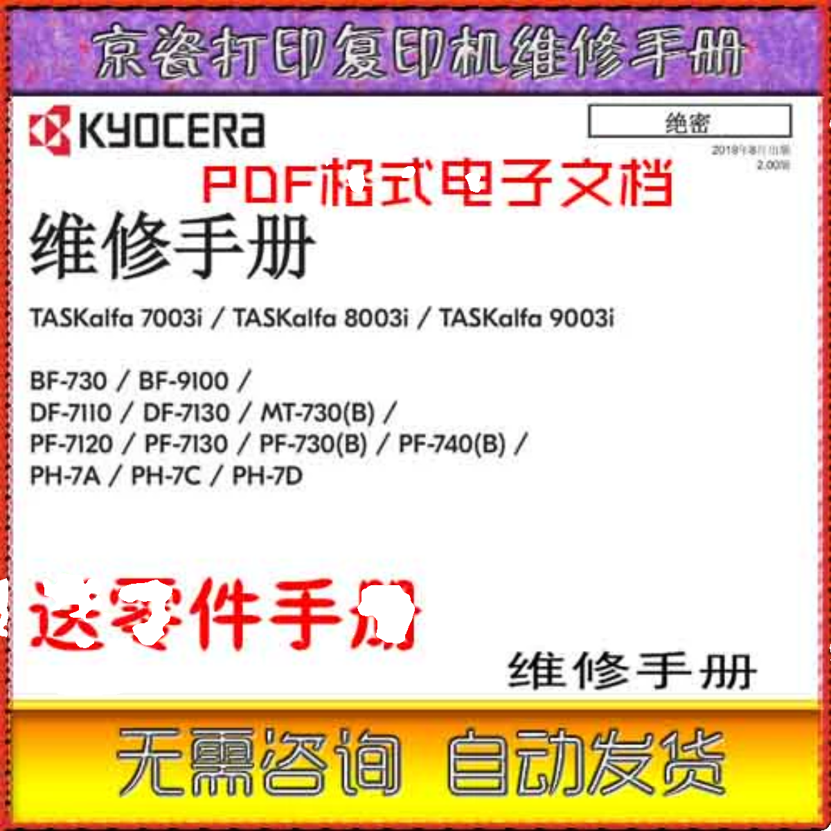 京瓷 TASKalfa 7003i 8003i 9003i 黑白复印机中文维修手册和零件