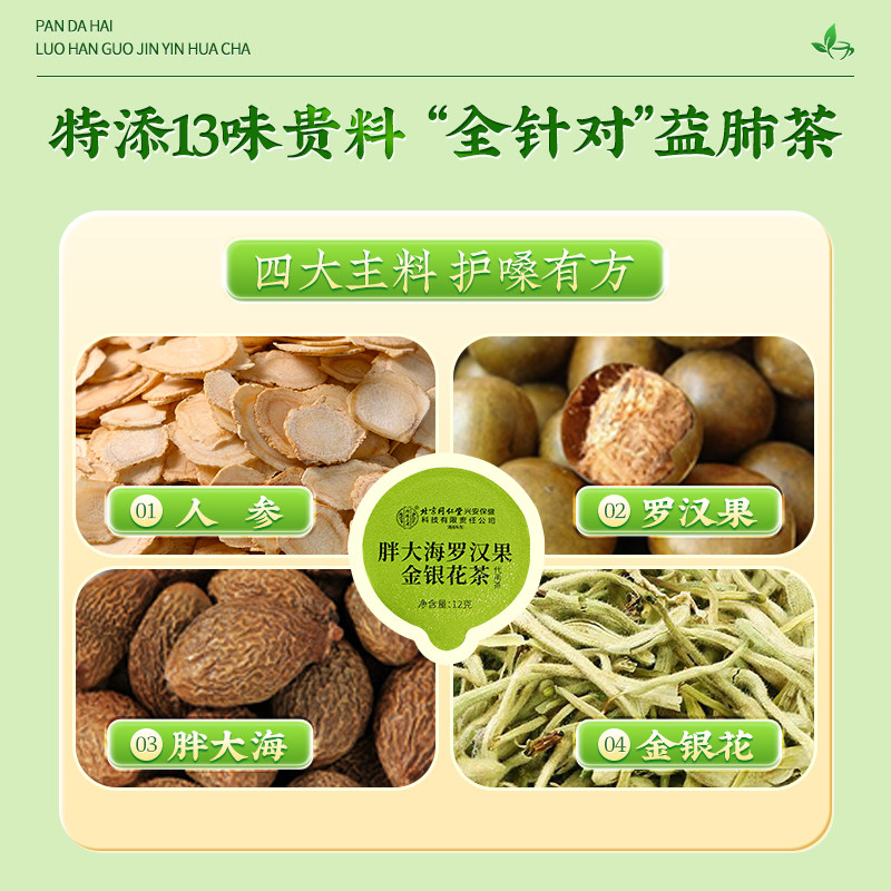 北京同仁堂内廷上用胖大海罗汉果金银花茶咽清养炎润化肺痰止咳茶