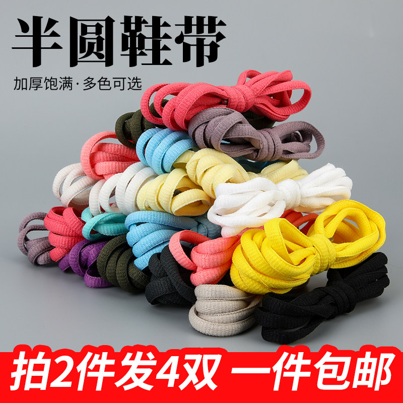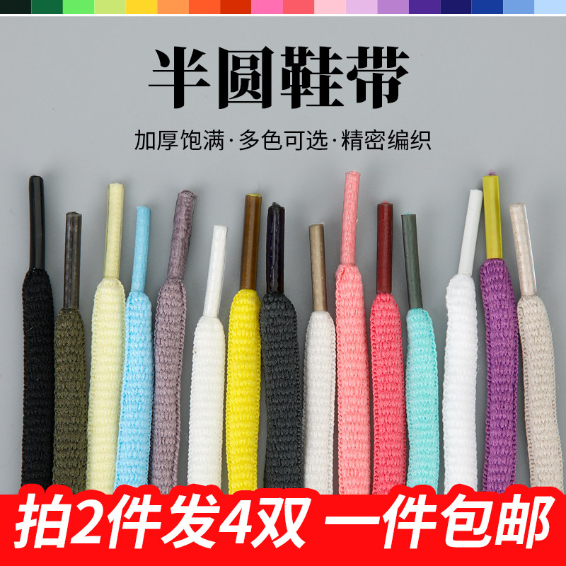 男女dunk运动鞋带休闲旅游鞋AJ篮球鞋专用黑白色彩色半圆形鞋绳子