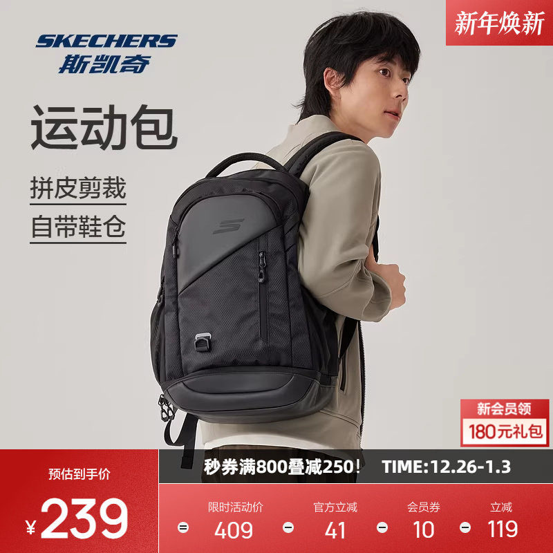 斯凯奇户外包2025秋季男女通用大容量舒适运动时尚休闲轻便运动包