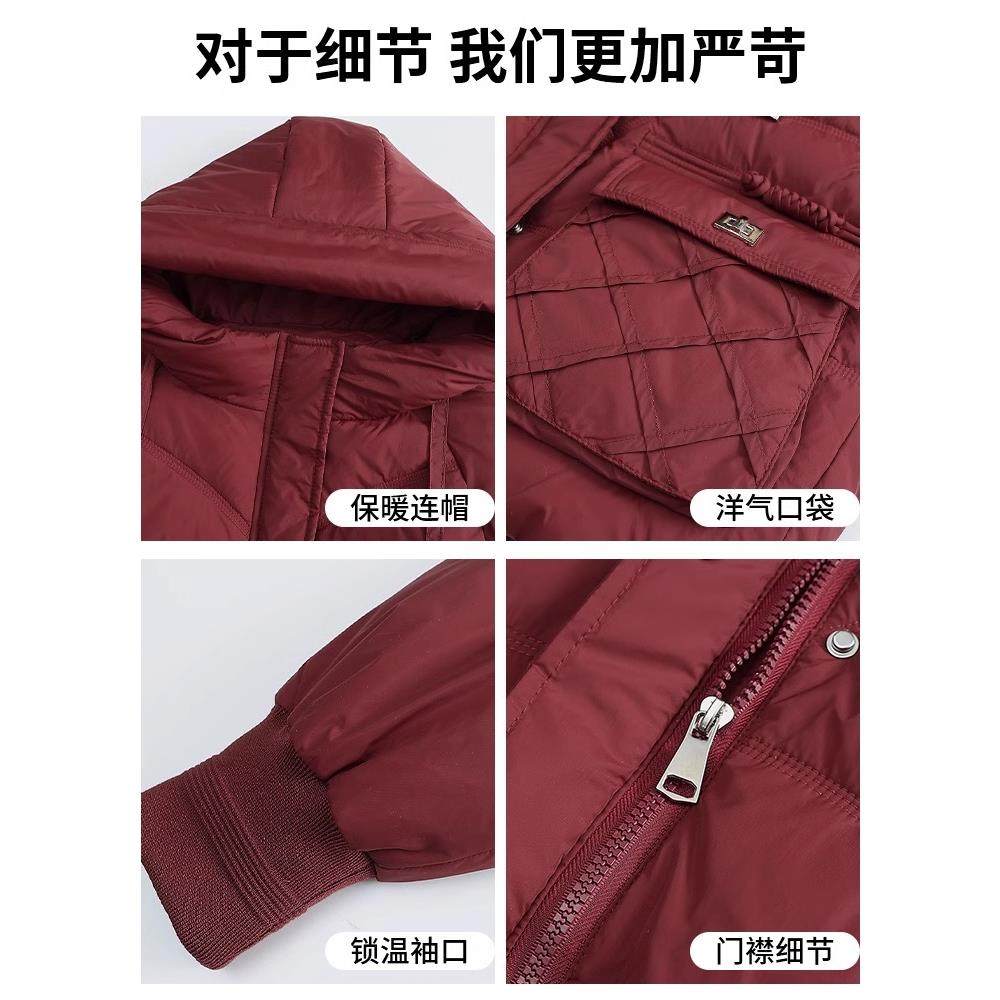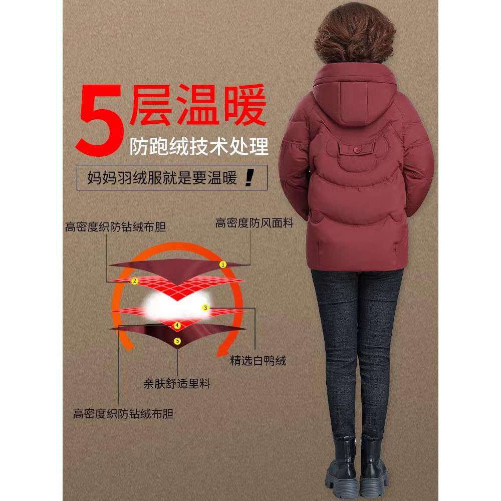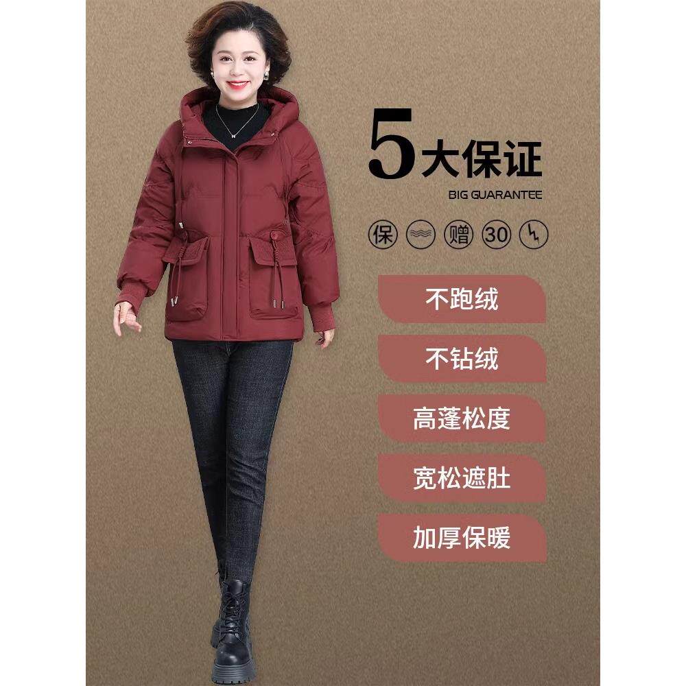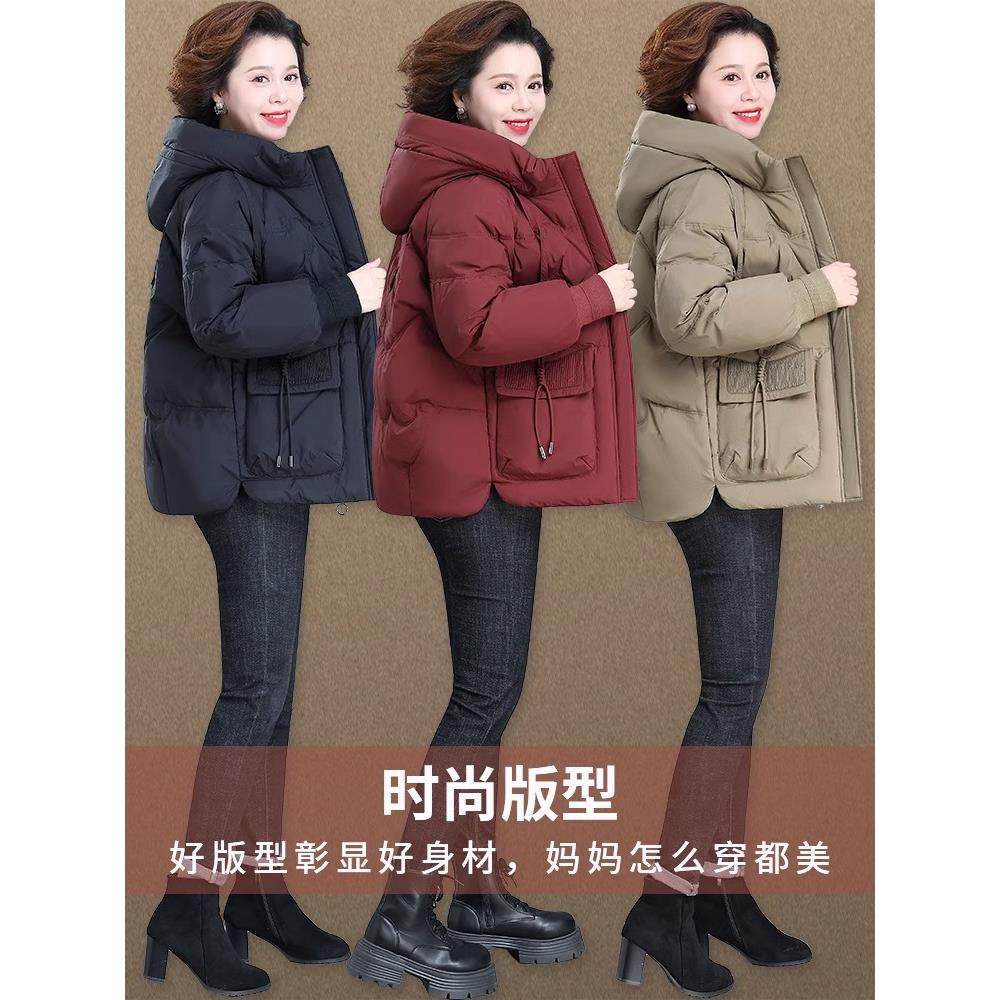 妈妈冬装洋气连帽羽绒服短款中年女时尚大码外套中老年保暖厚棉袄