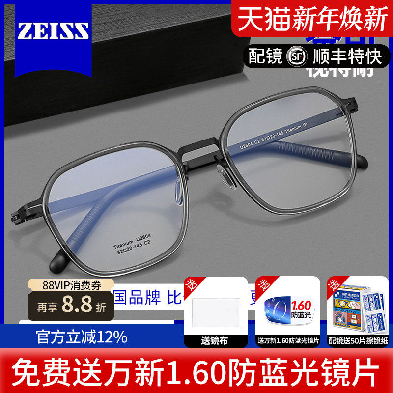 德国蔡司眼镜近视男眉框散光纯钛超轻镜片定制度数可配蓝光女镜框