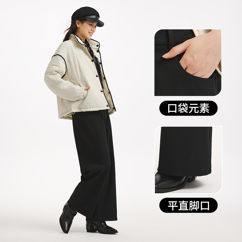 热风2025年冬季新款女士时尚宽松阔腿西裤修饰腿型显高显瘦