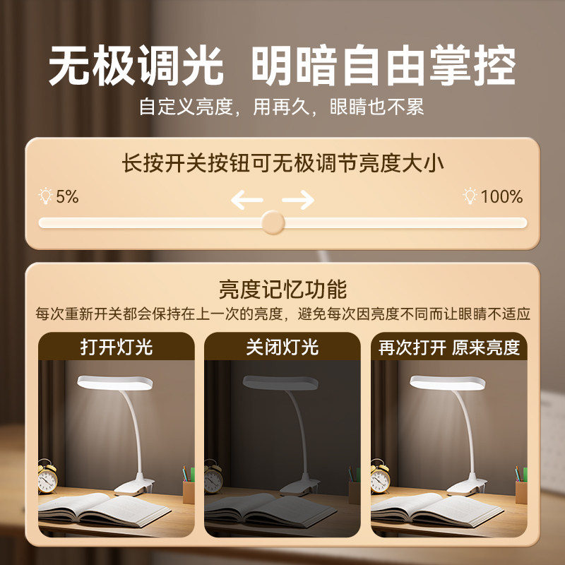 优乐明夹子可夹式充电台灯宿舍大学生阅读床头灯护眼学习专用卧室