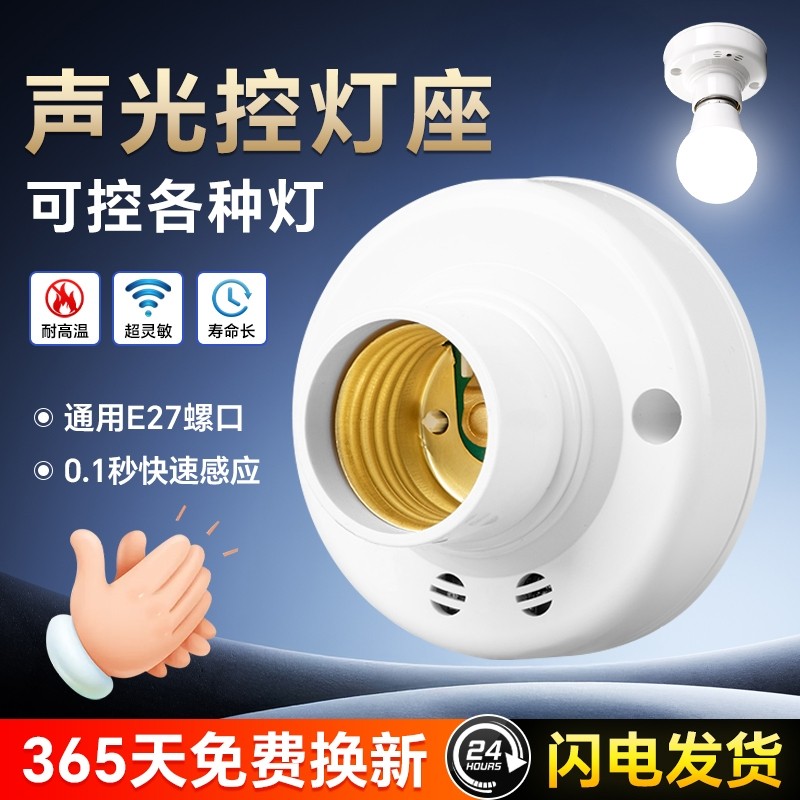 声光控灯座楼道智能感应声控e27螺口明装走廊楼梯超灵敏感应灯座