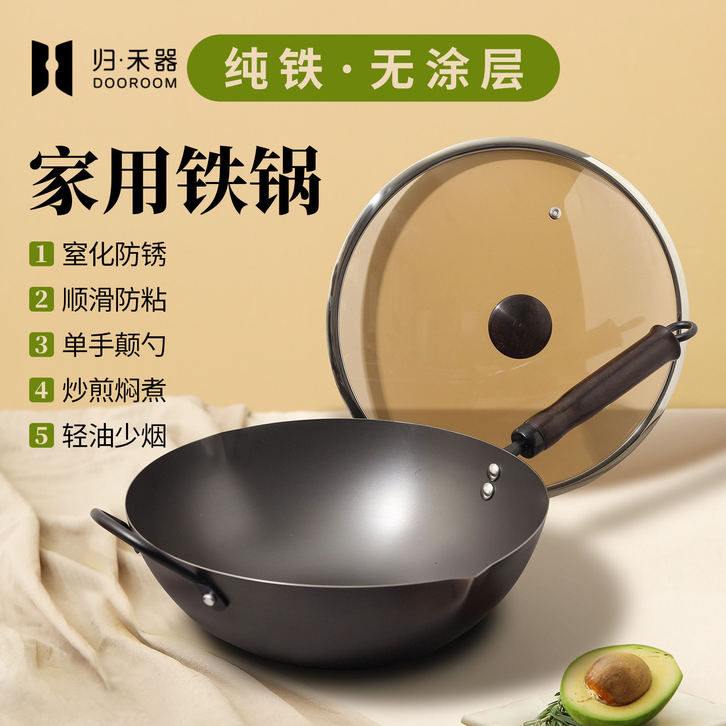 归禾器家用炒锅老式铁锅平底炒菜锅燃气灶电磁炉专用无涂层不粘锅