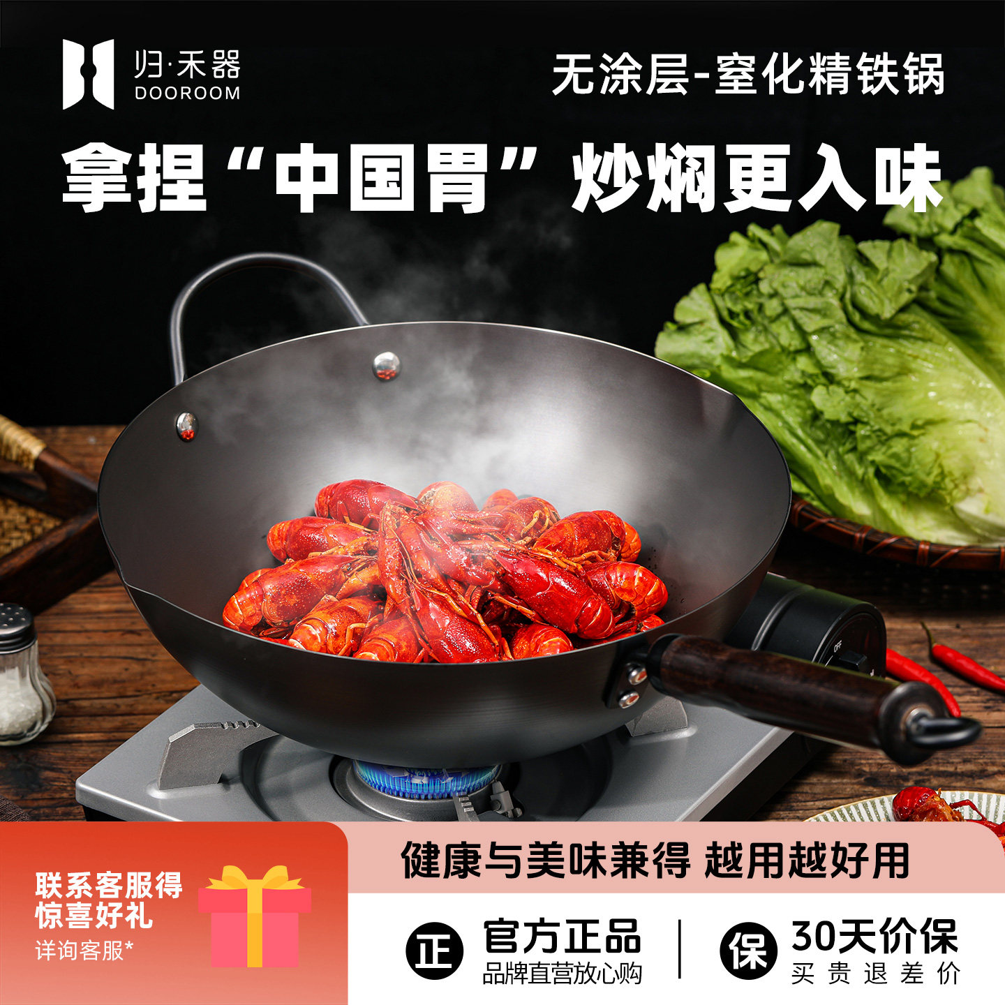 铁锅官方旗舰炒菜锅老式炒锅铁锅家用不粘锅无涂层燃气灶适用