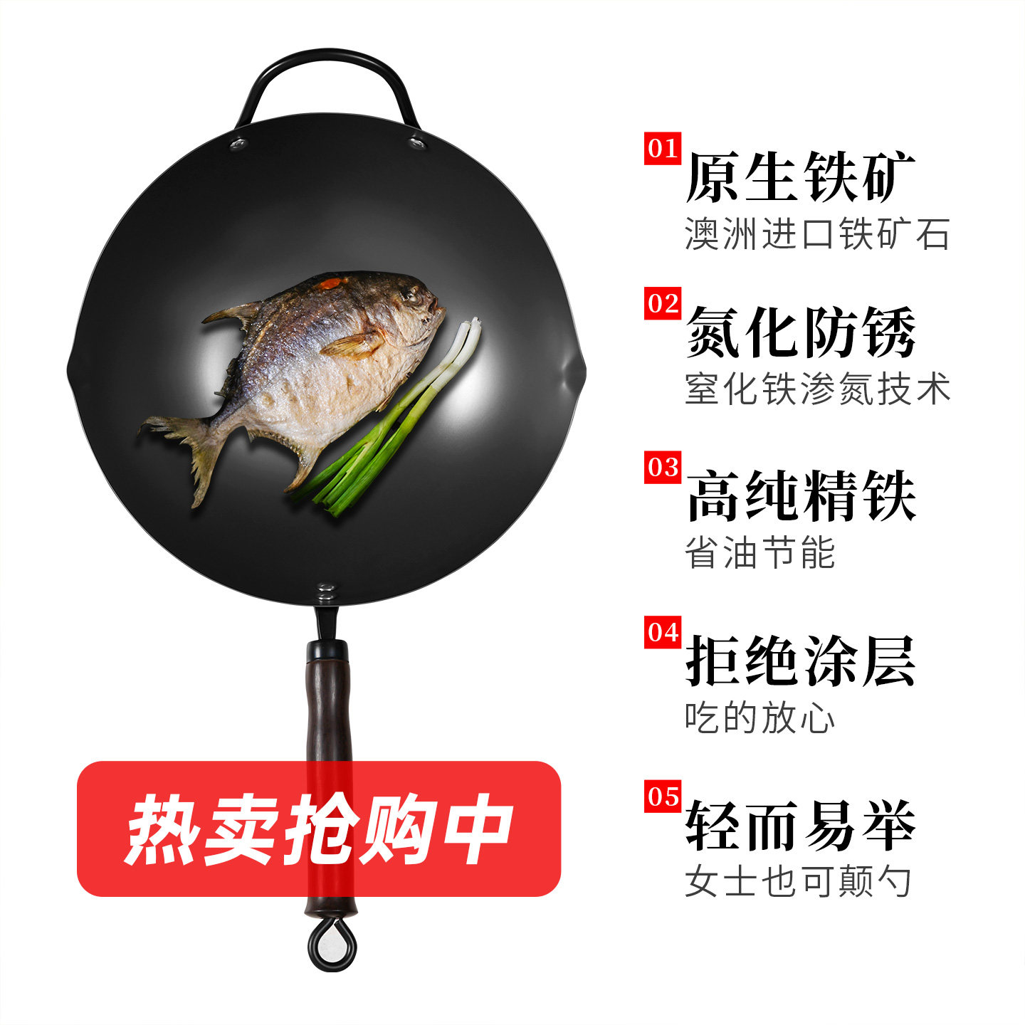 【经典款】中康精铁炒锅铁锅氮化防锈无涂层炒锅电磁炉燃气灶通用